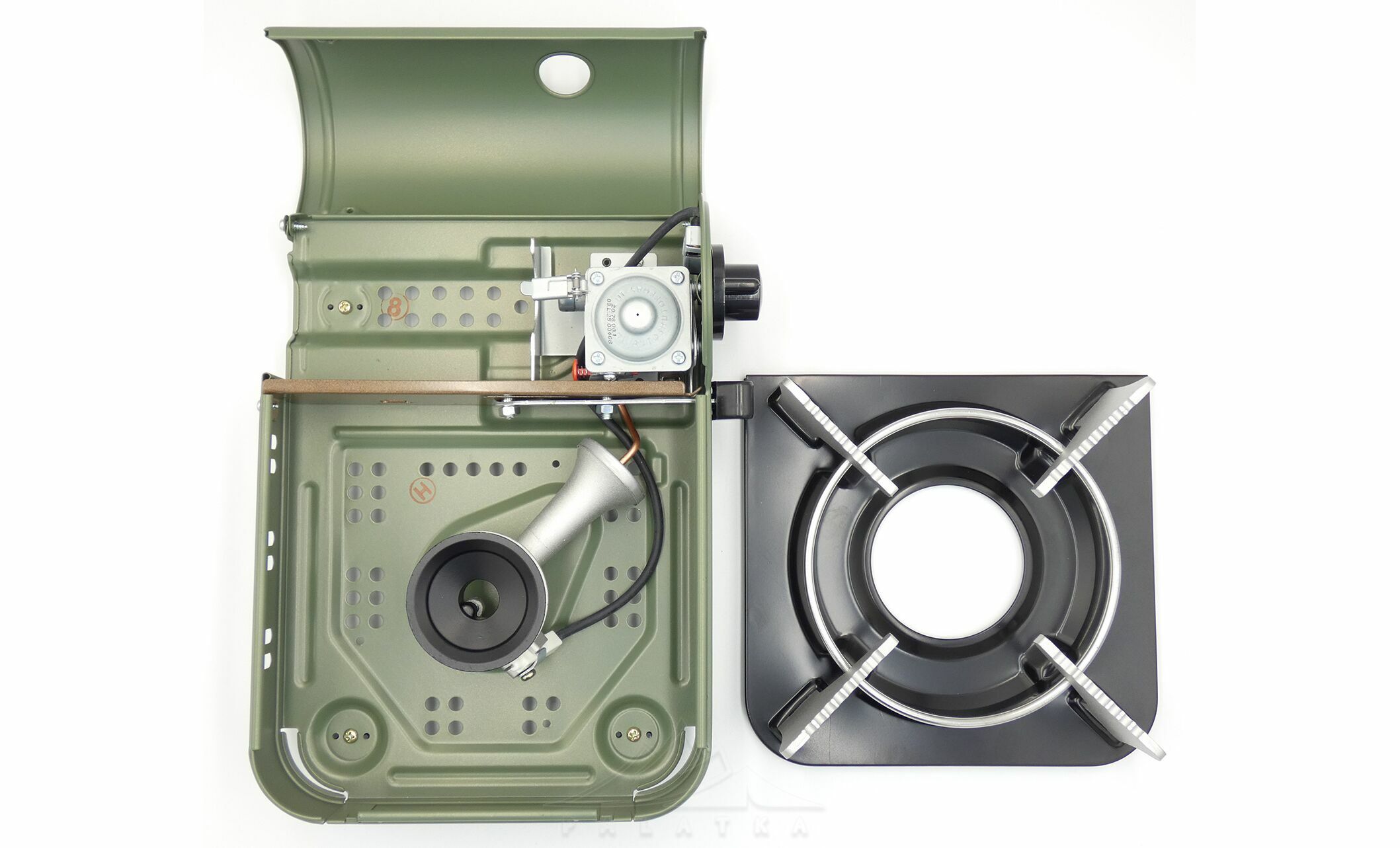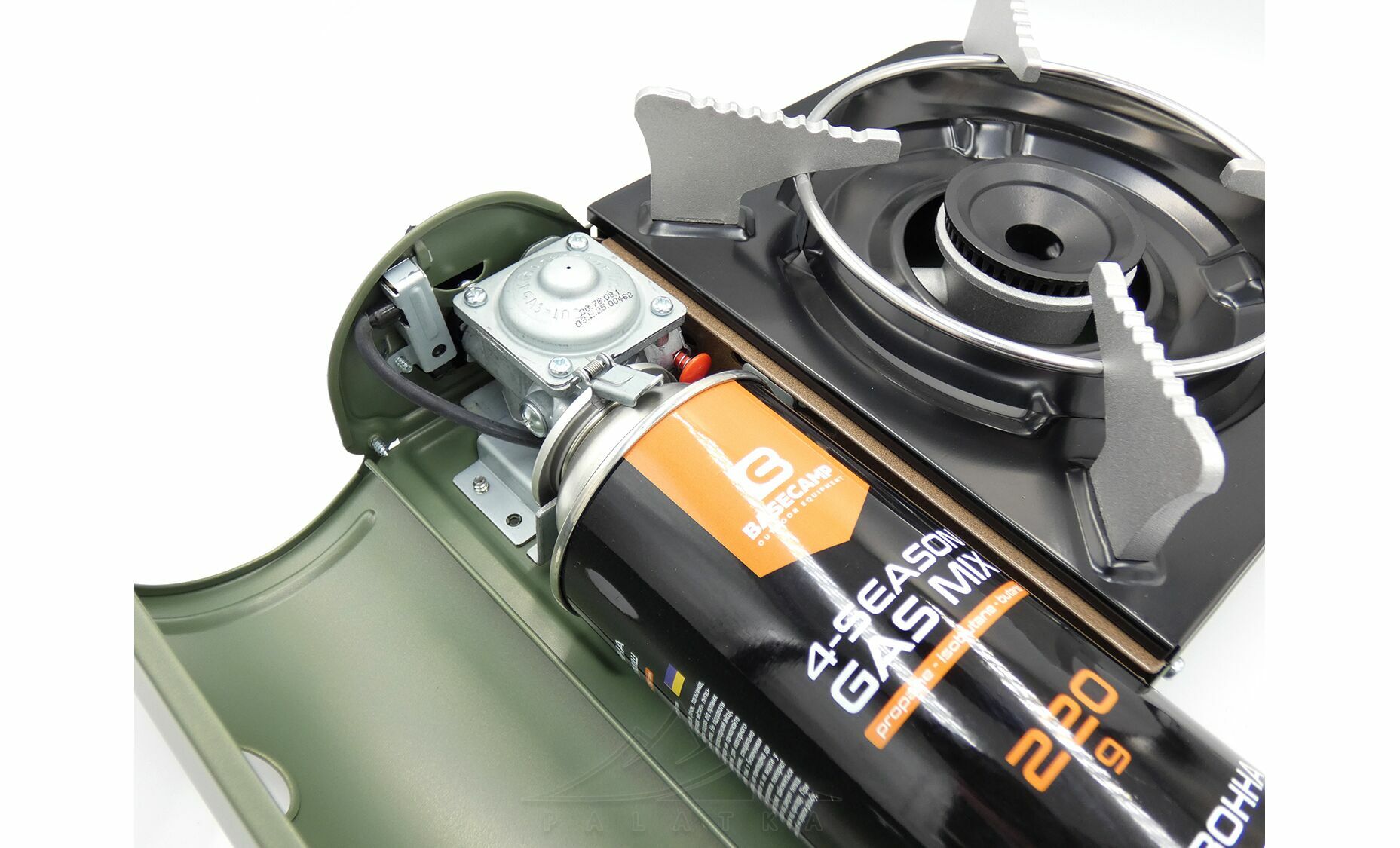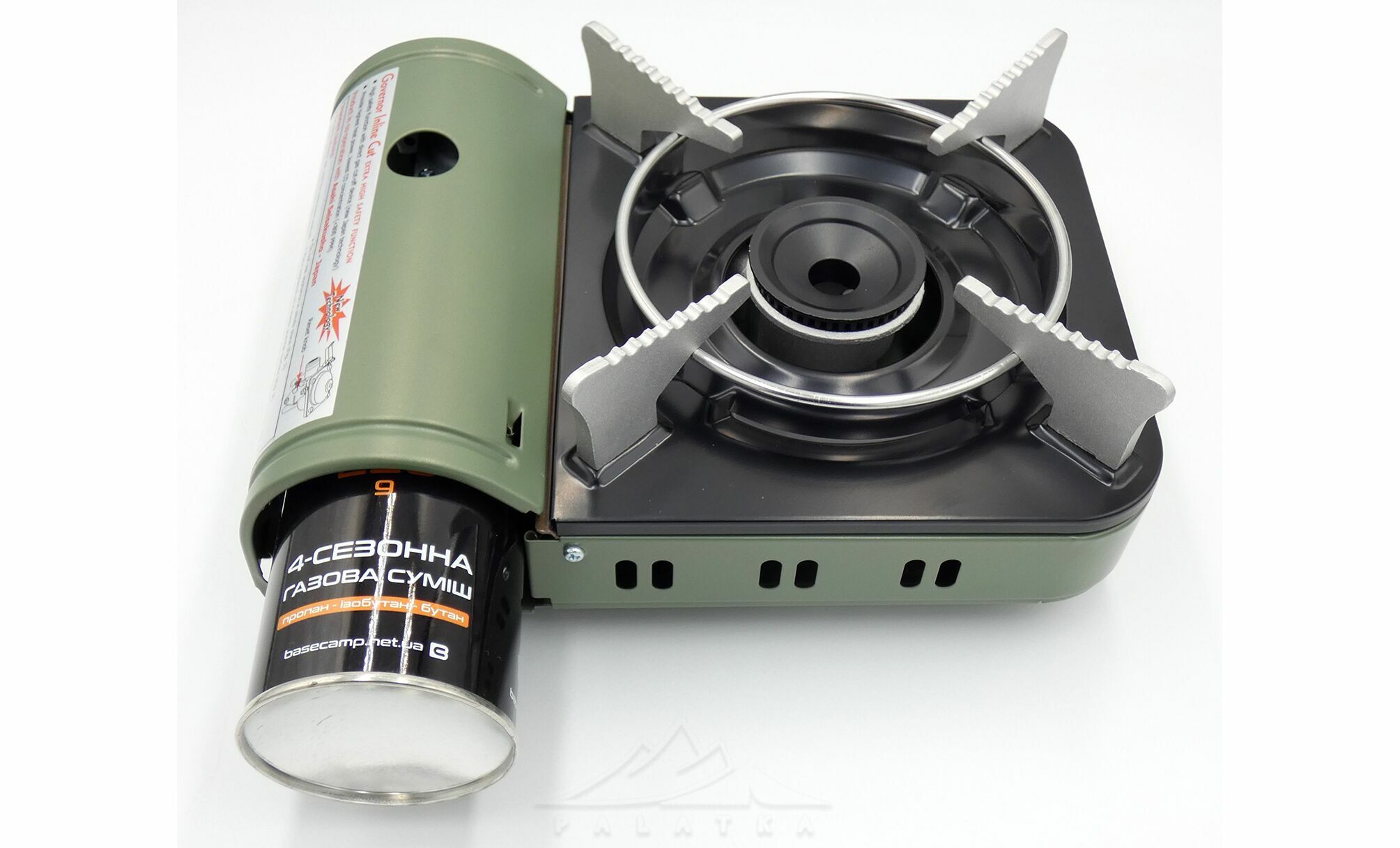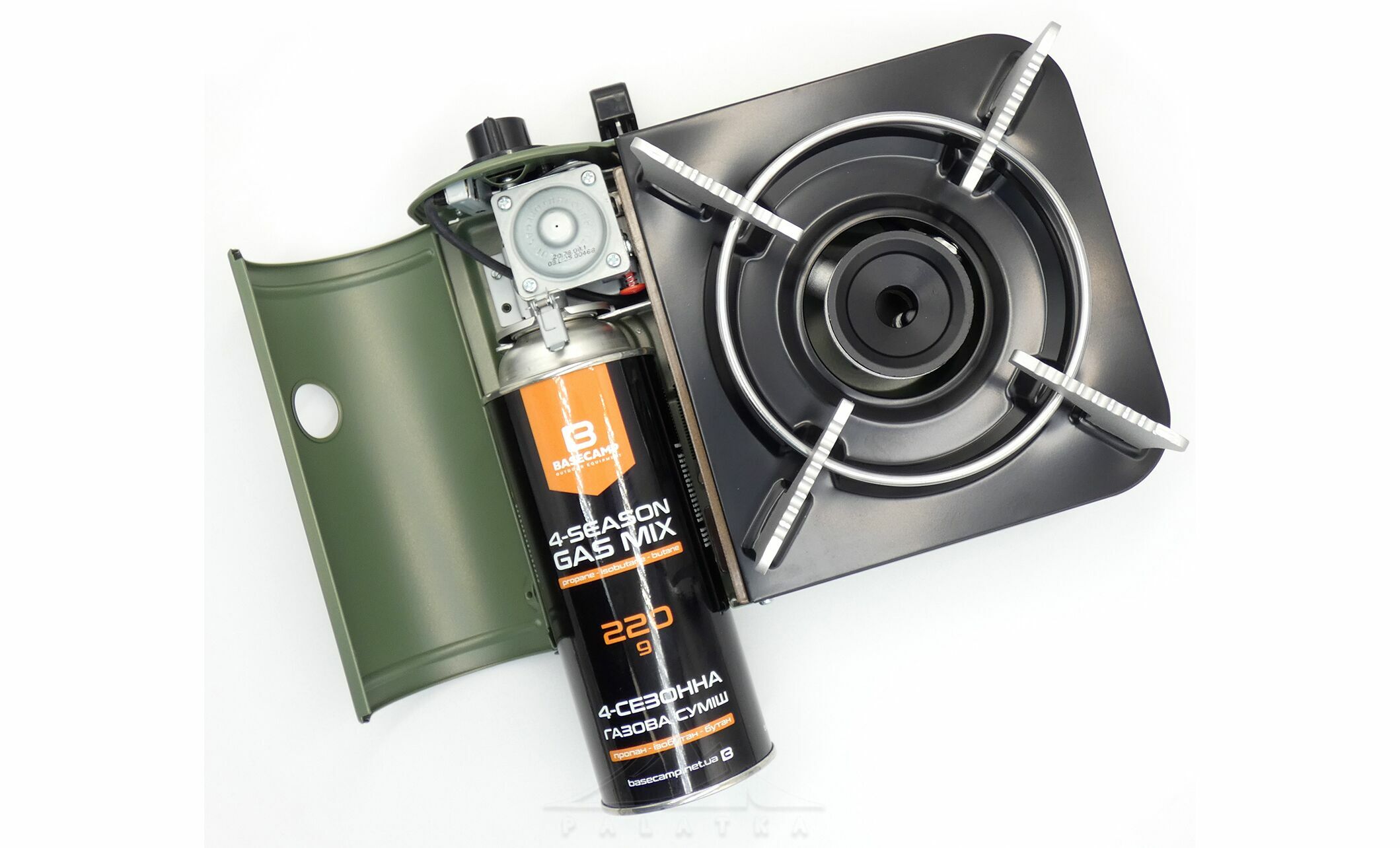 - Працює від туристичного цангового балону (не в комплекті), який встановлюється в середину плити.