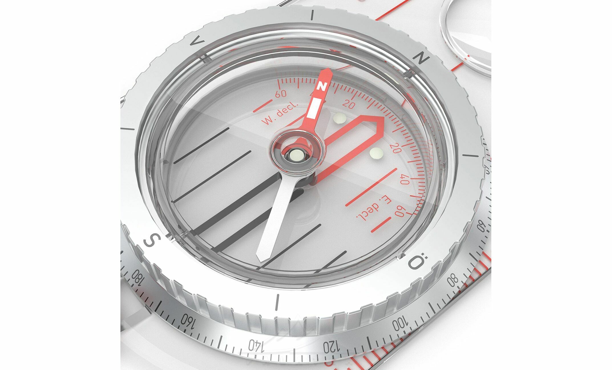 - Індикатор півночі та півдня червоного і чорного кольору для чіткого орієнтування.