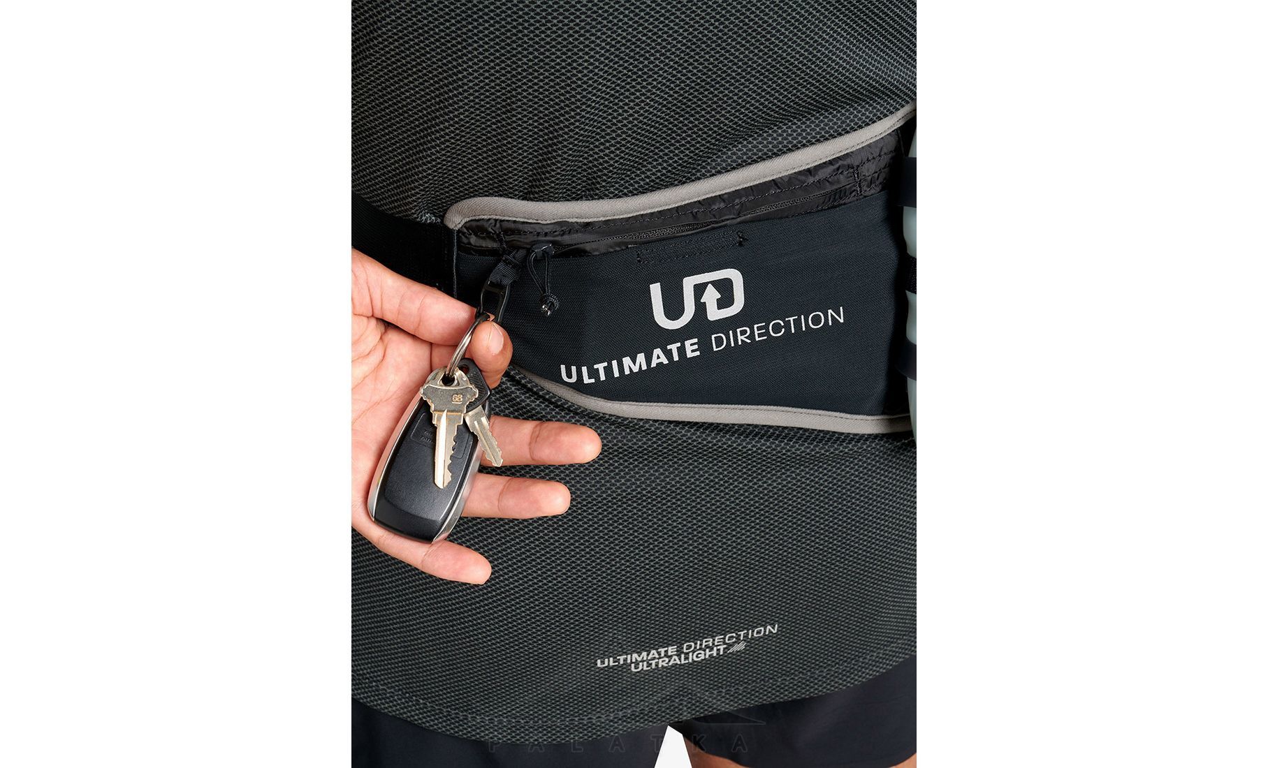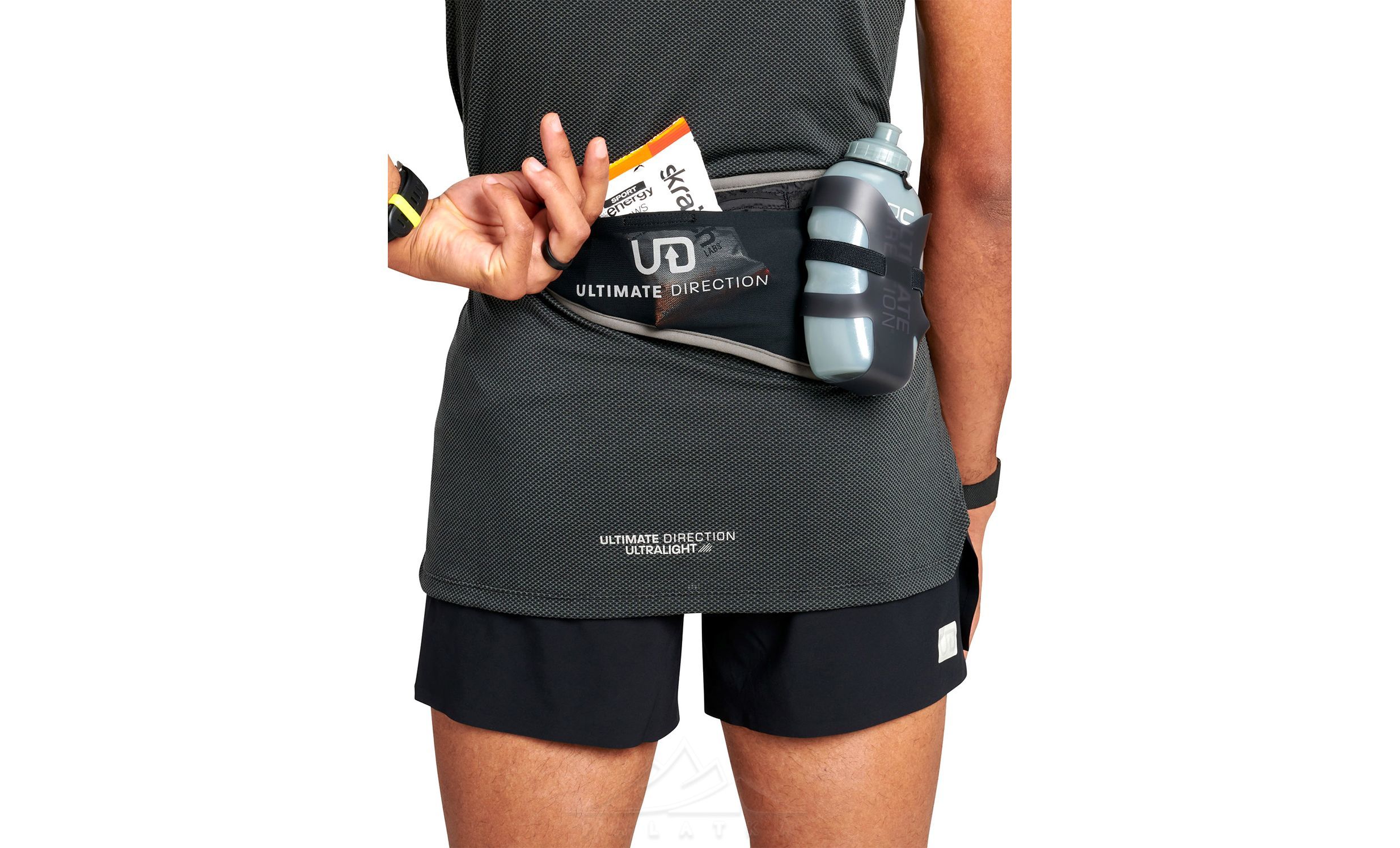 Ultimate Direction Access 500 — легка та функціональна поясна сумка з флягою, створена для прогулянок і пробіжок. Забезпечує зручне зберігання всіх необхідних речей: запасу води, телефону, ключів, енергетичних гелів або батончиків.