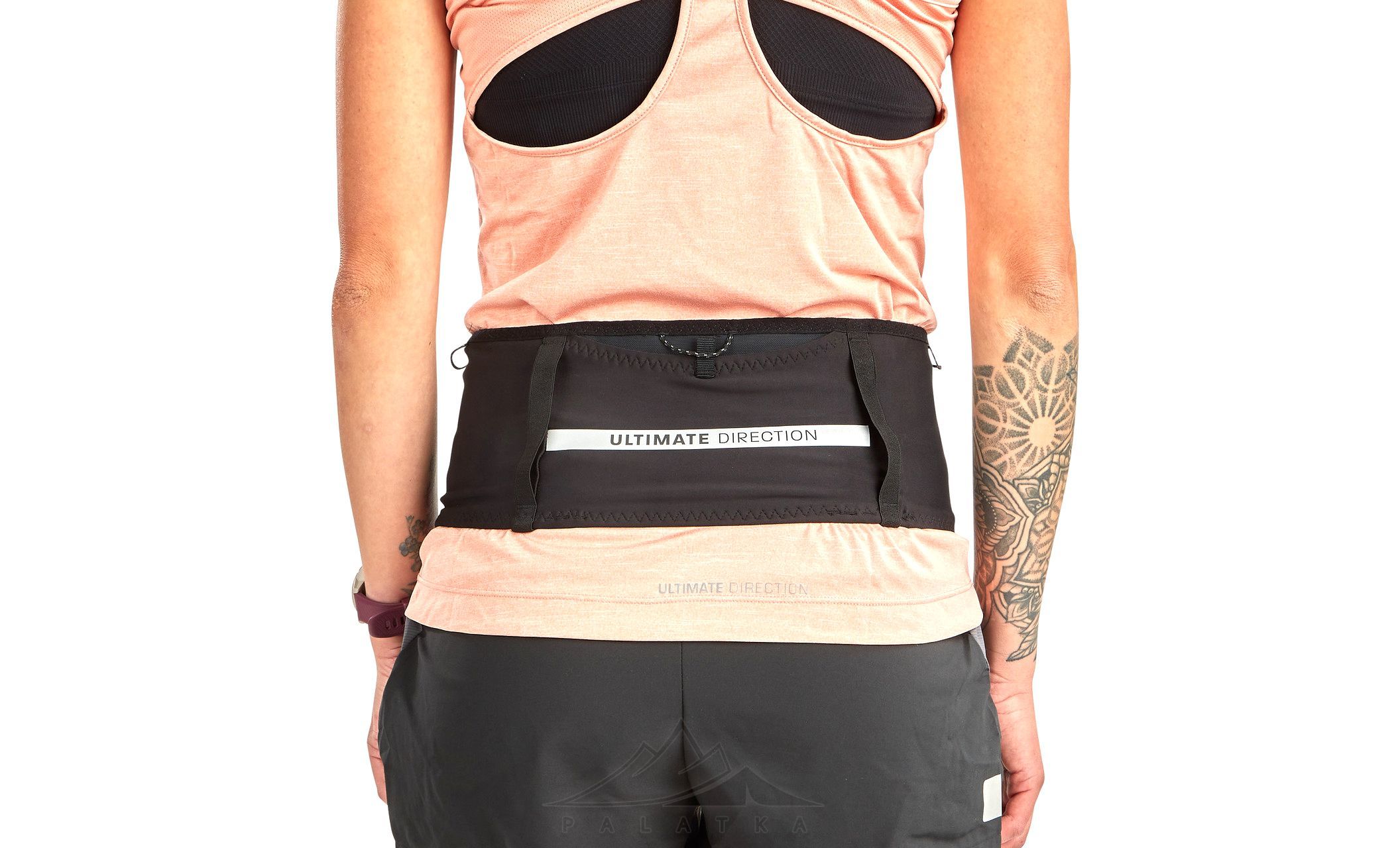Ultimate Direction Utility — еластична та функціональна поясна сумка для бігу, що забезпечує надійну та комфортну посадку без застібок. Ідеально підходить для перенесення гнучкої фляги на 500 мл, трекінгових палиць, телефону, куртки та інших дрібних цінних речей під час активного руху.