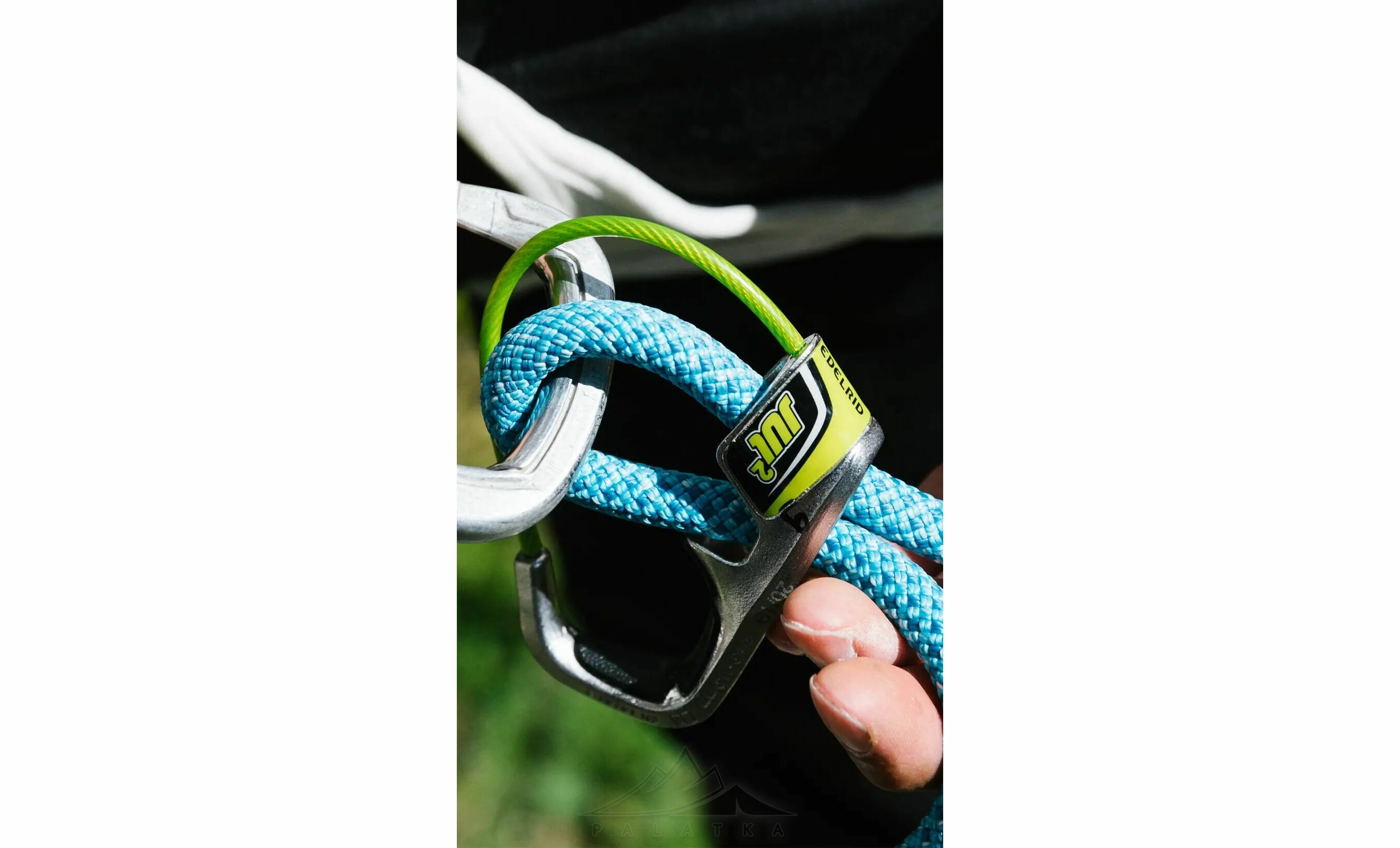 - Найкраще працює з карабіном типу HMS. Виробник рекомендує Edelrid HMS Bulletproof Belay Eco зі сталевою вставкою.
