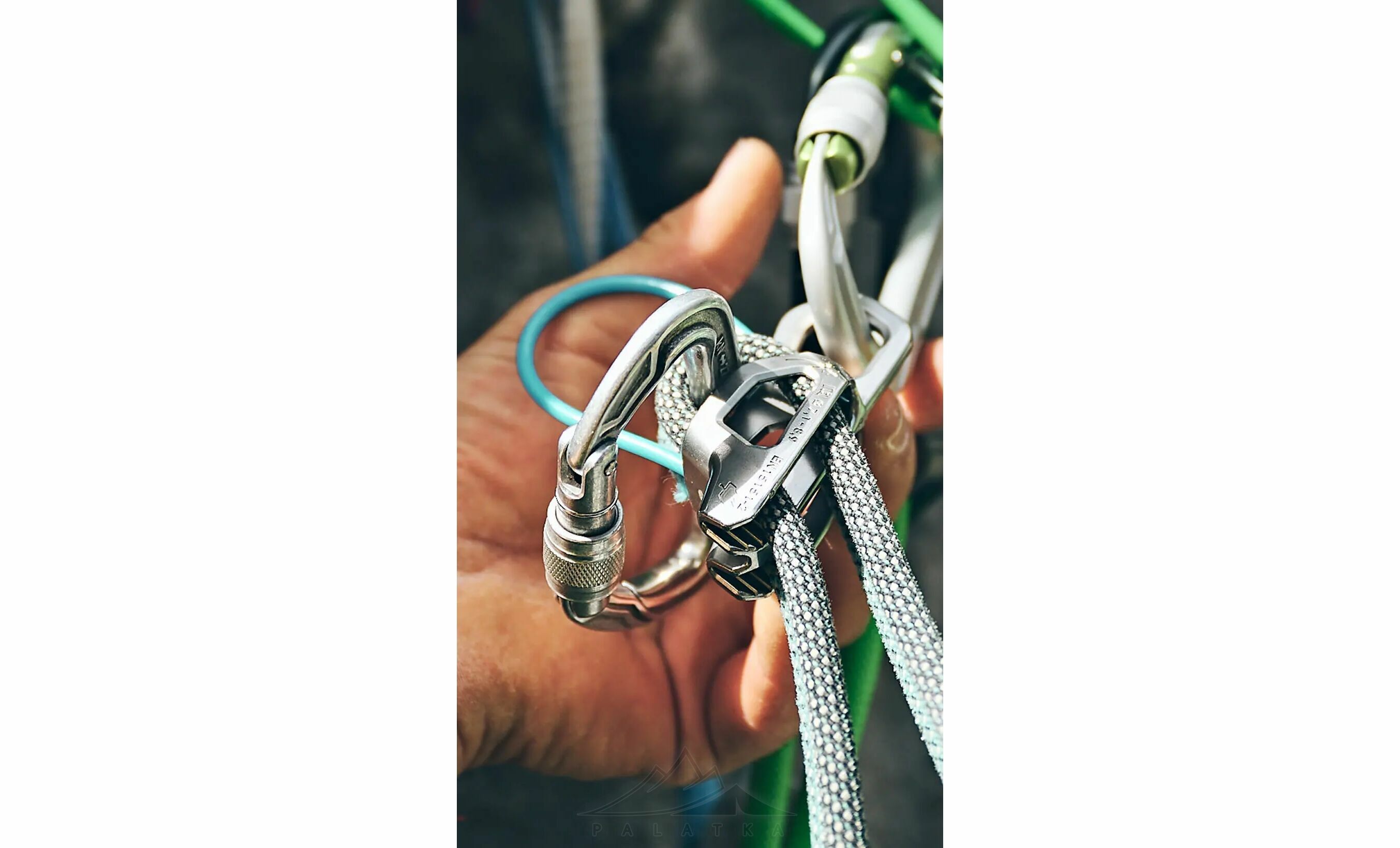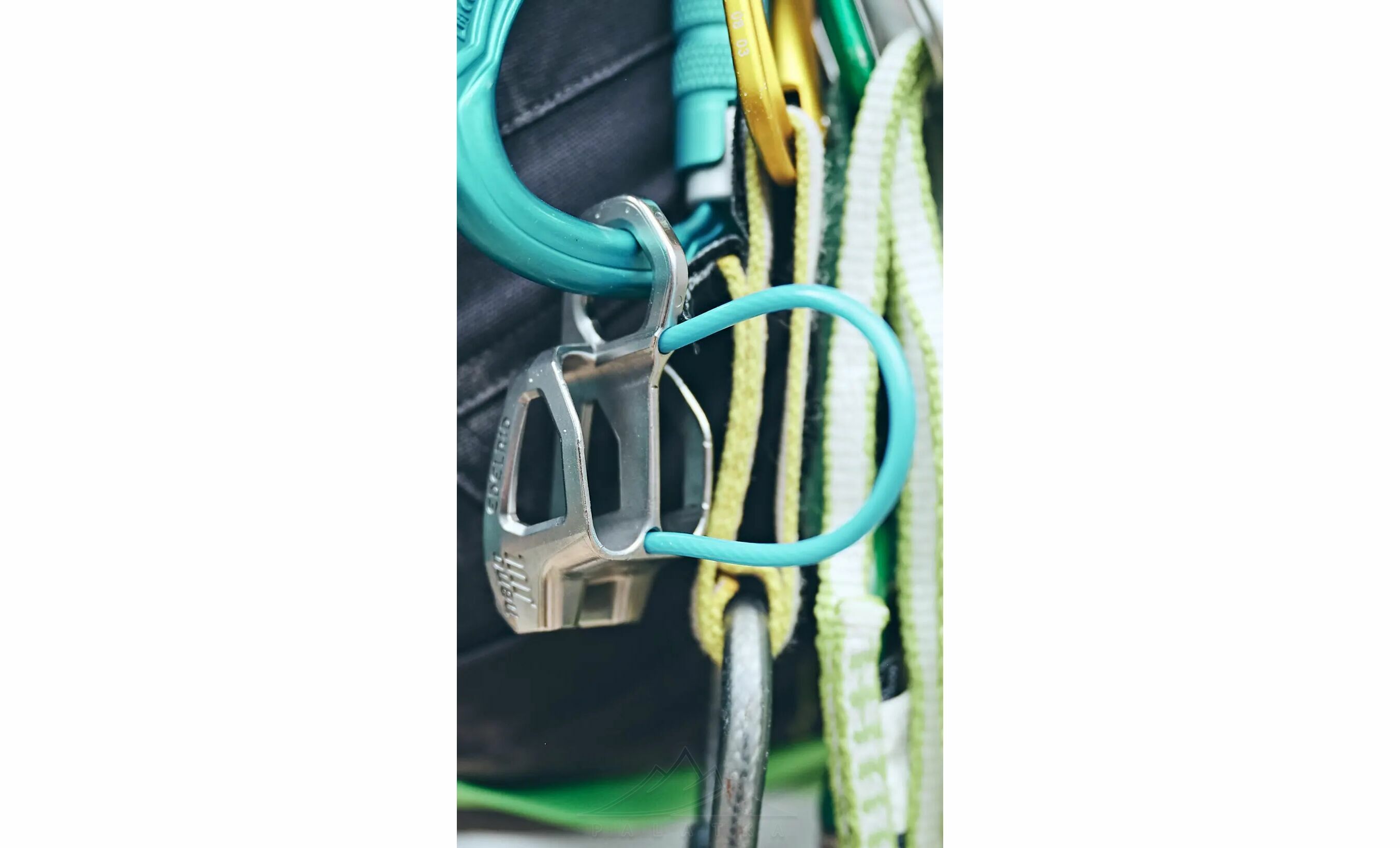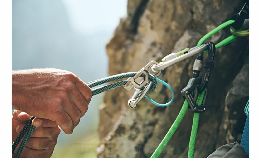 - Найкраще працює з карабінами типу HMS. Для режиму гіда та спуску допускаються також O- і D-подібні карабіни. Виробник рекомендує Edelrid Bulletproof із захисною сталевою вставкою.