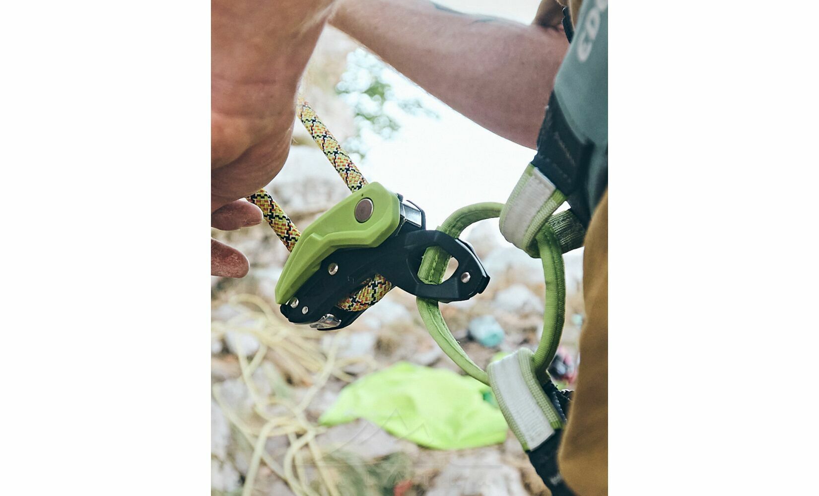- Сумісність з мотузками: працює з одинарними мотузками діаметром 8,5–10,5 мм (для скелелазіння) та 10–10,5 мм (рекомендований діаметр для промальпу).