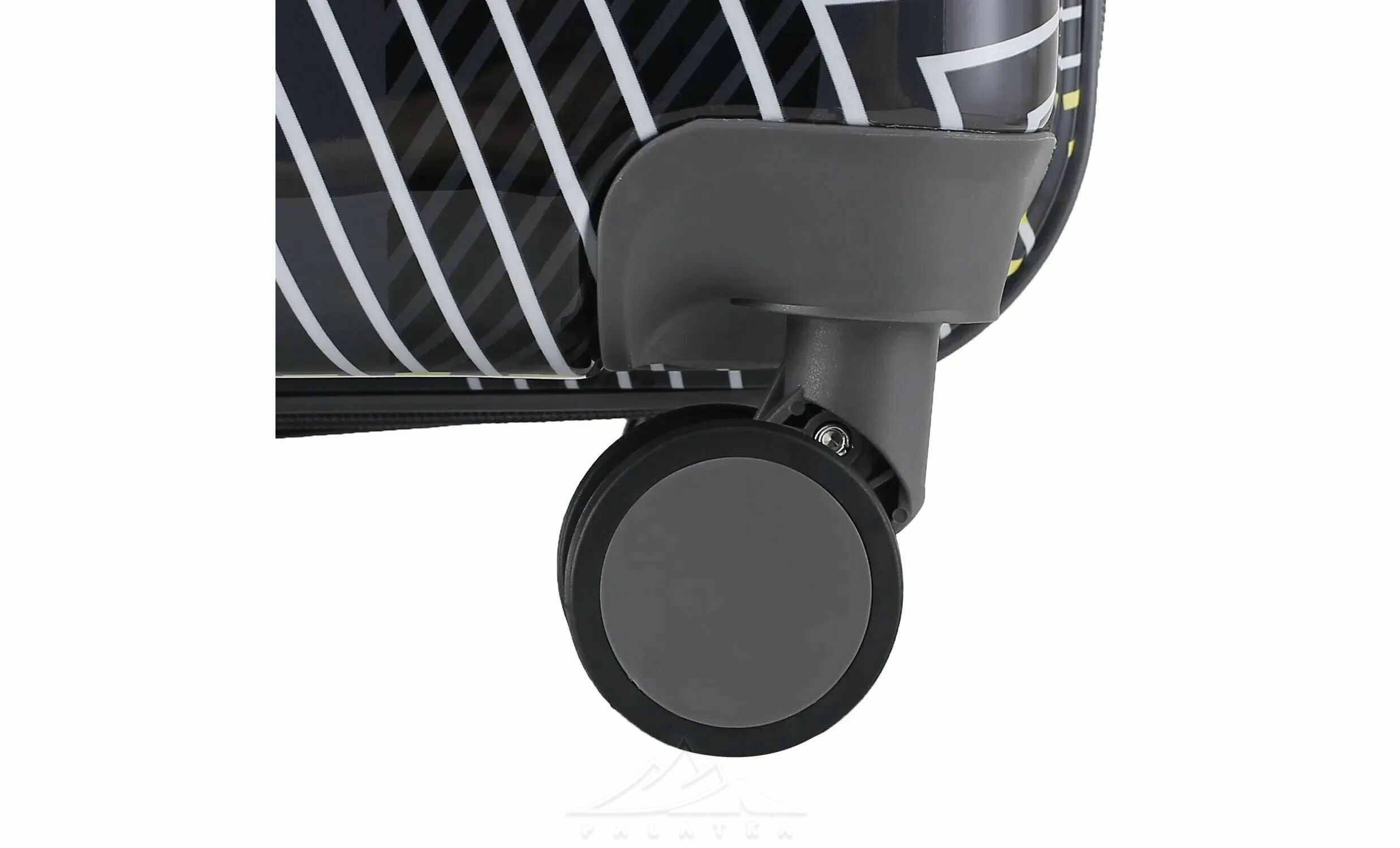• Чотири здвоєні колеса великого діаметра з обертанням на 360° — забезпечують плавніший хід, кращу стійкість і допомагають легше маневрувати в аеропорту, на вокзалі чи в готелі.