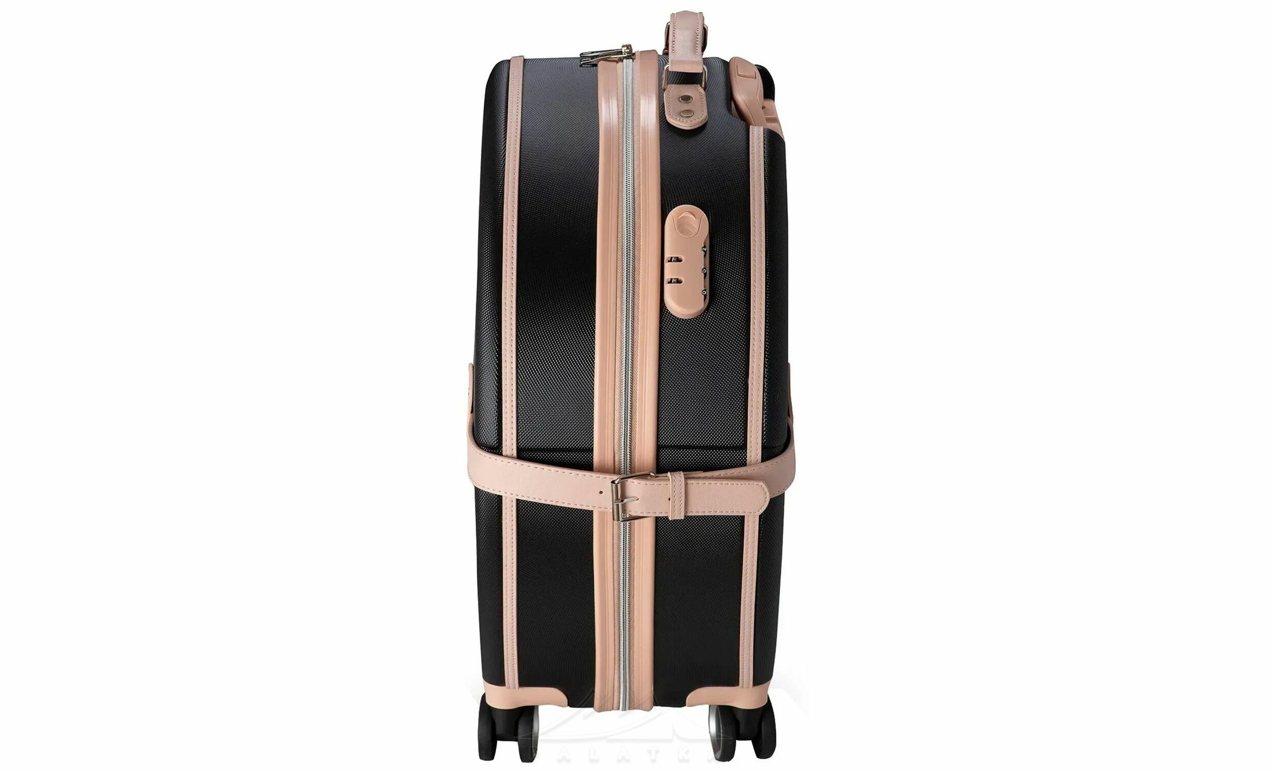 • Чотири здвоєні колеса з обертанням на 360° — забезпечують плавніший хід, кращу стійкість і допомагають легше маневрувати в аеропорту, на вокзалі чи в готелі.