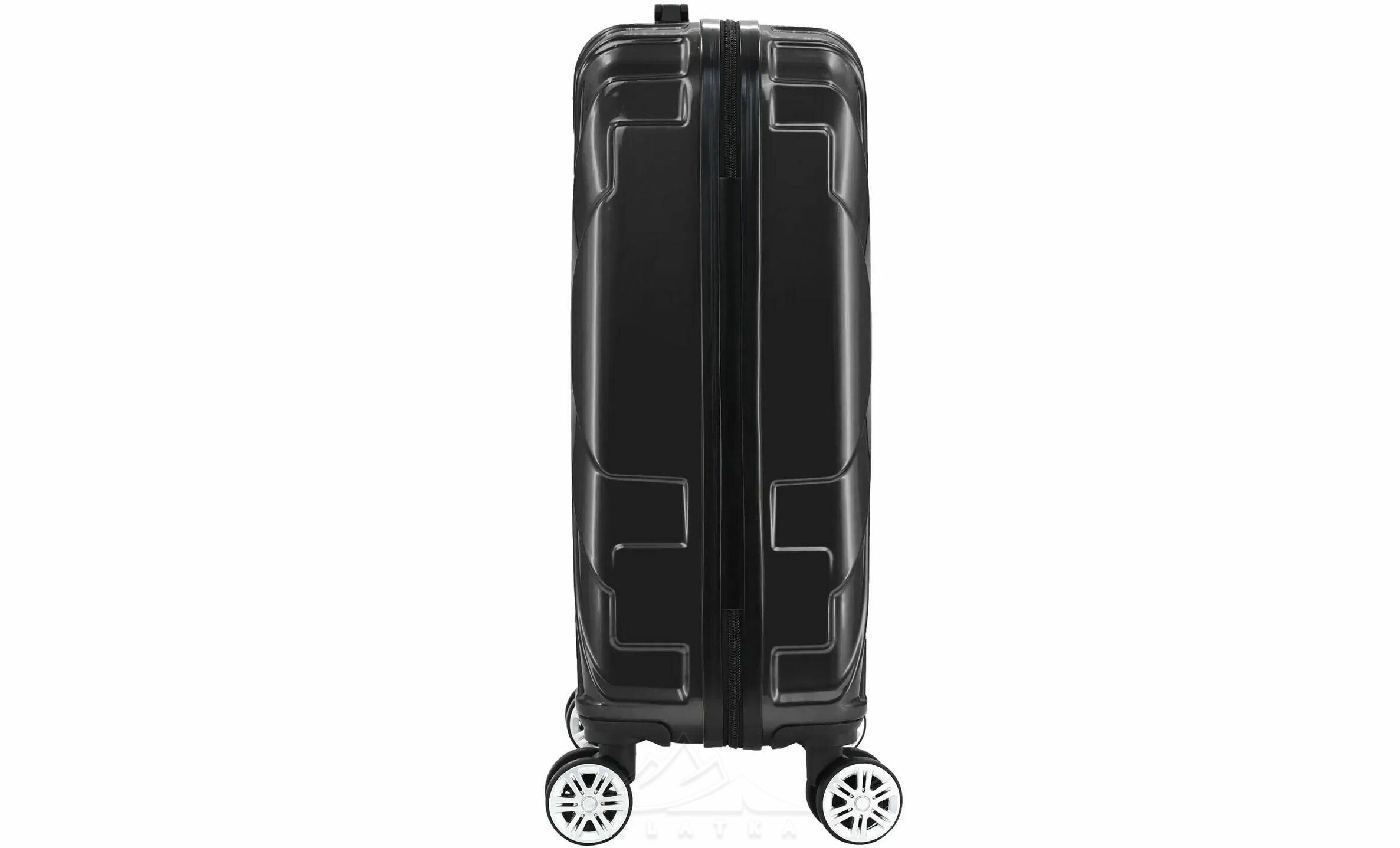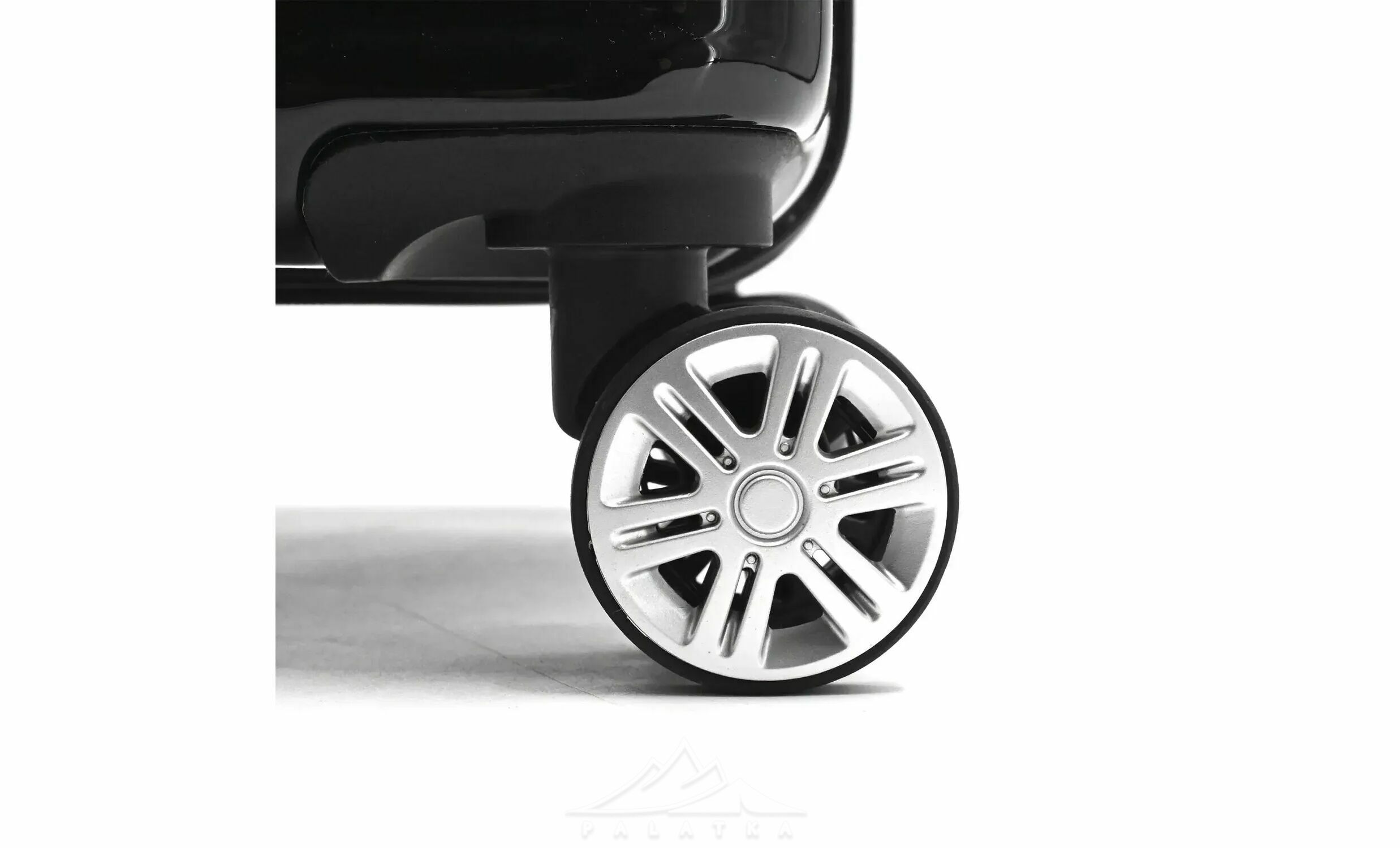 - Чотири здвоєні колеса з обертанням на 360° — забезпечують плавніший хід, кращу стійкість і допомагають легше маневрувати в аеропорту, на вокзалі чи в готелі.