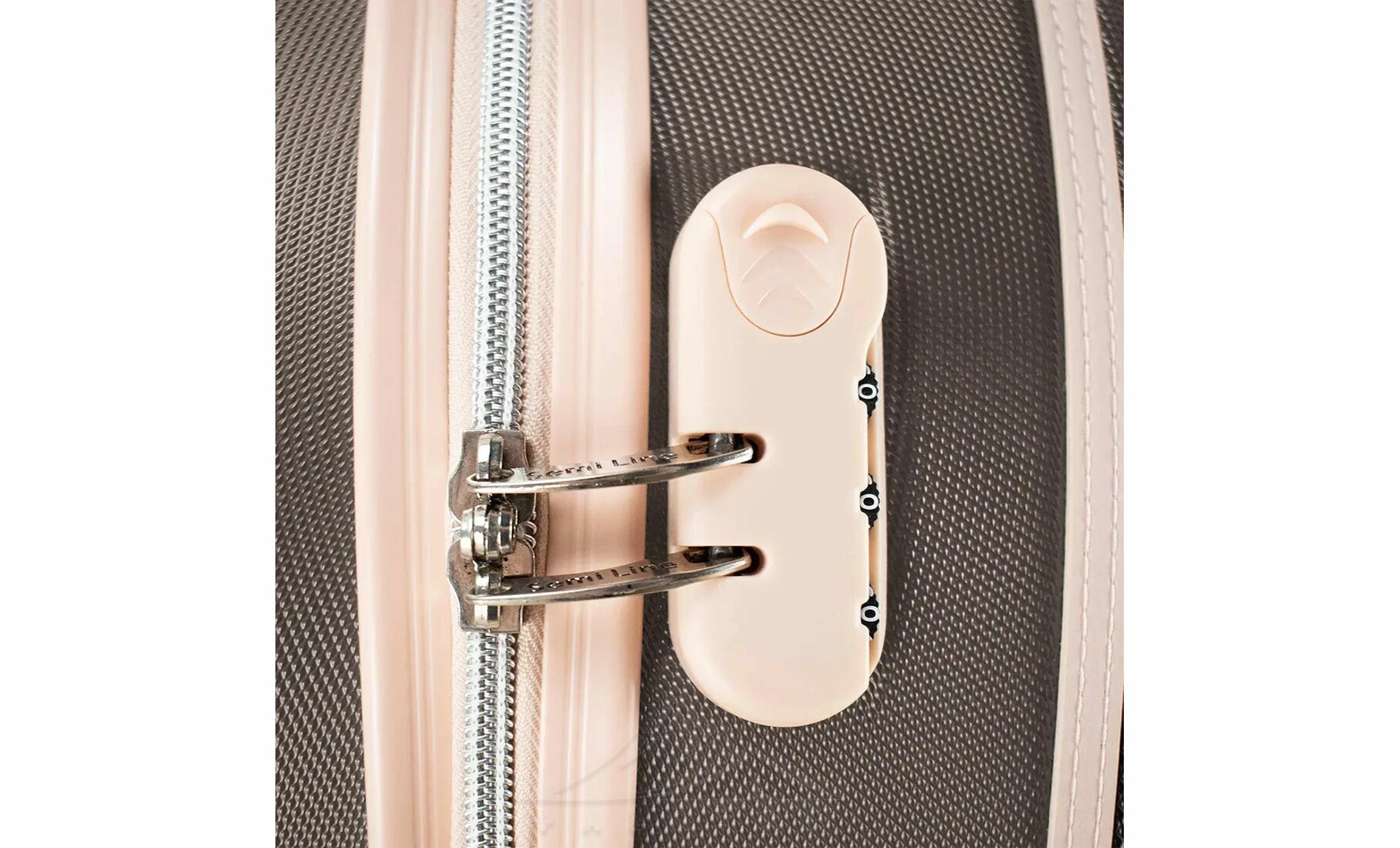 - Чотири здвоєні колеса з обертанням на 360° — забезпечують плавніший хід, кращу стійкість і допомагають легше маневрувати в аеропорту, на вокзалі чи в готелі.