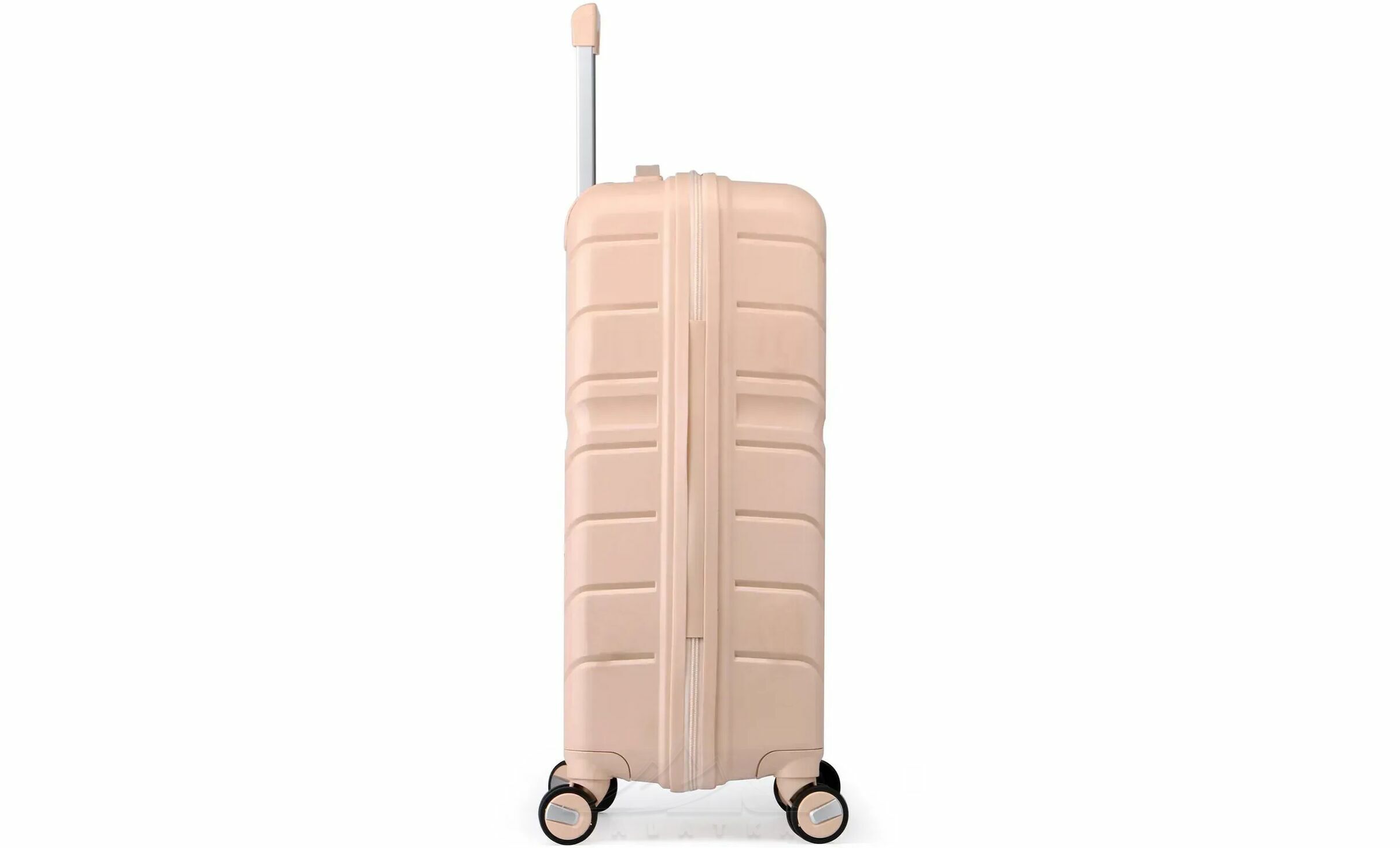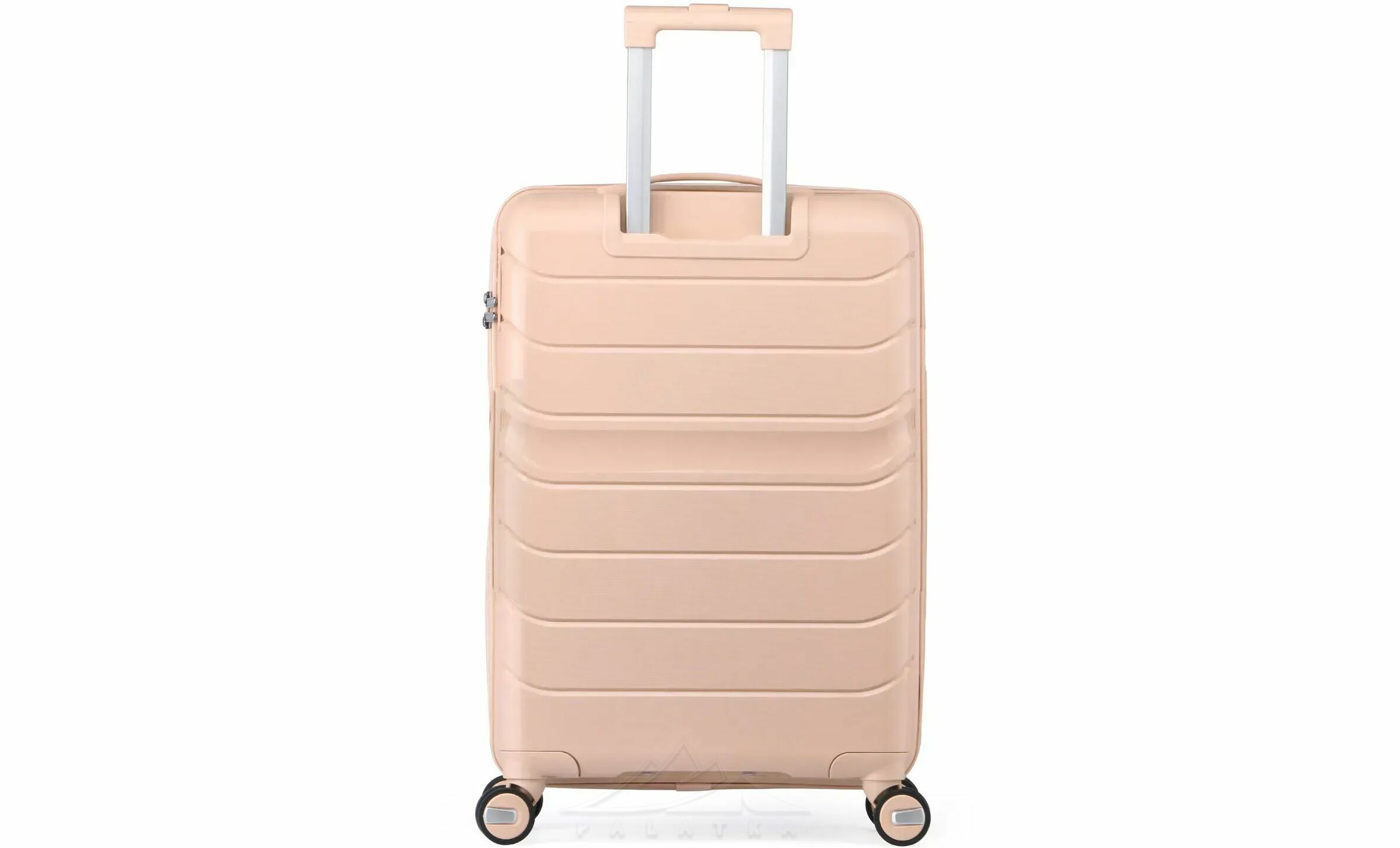 - Жорсткий корпус із поліпропілену — поєднує легкість із міцністю, краще пружинить при випадкових ударах і допомагає довше зберігати охайний вигляд валізи.