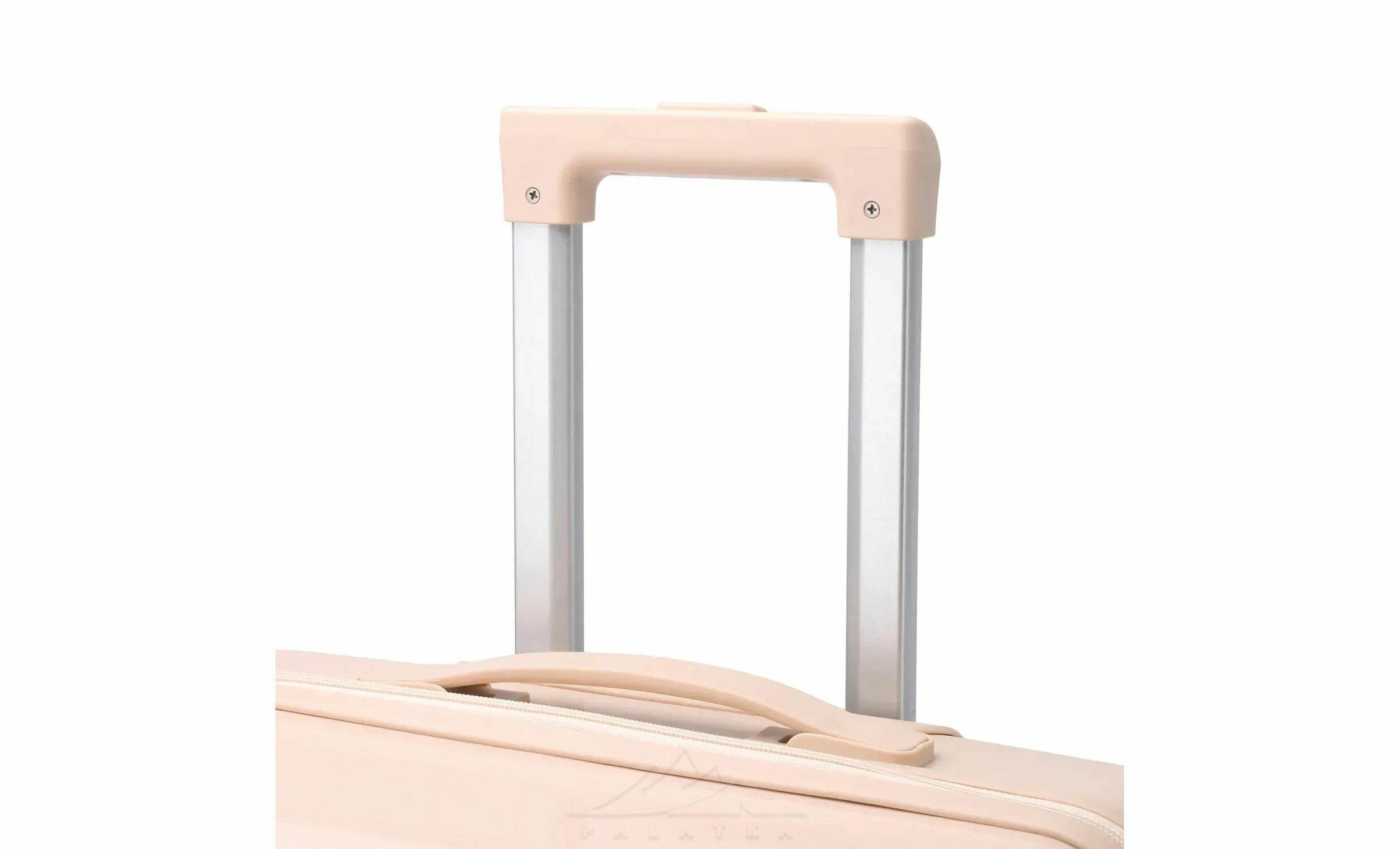 - Алюмінієва телескопічна ручка з фіксацією у двох положеннях — допомагає зручніше вести валізу та підлаштувати висоту під себе.