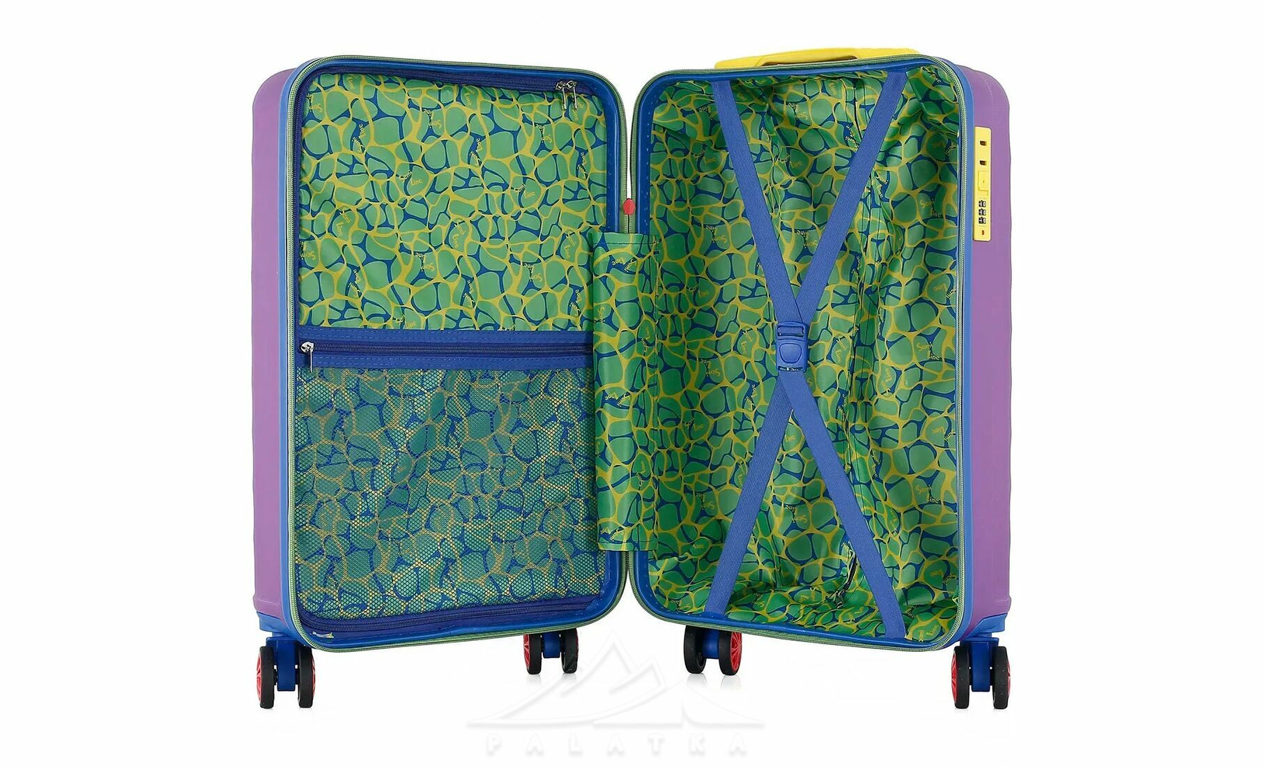 - Чотири здвоєні колеса з обертанням на 360° — забезпечують плавніший хід, кращу стійкість і допомагають легше маневрувати в аеропорту, на вокзалі чи в готелі.