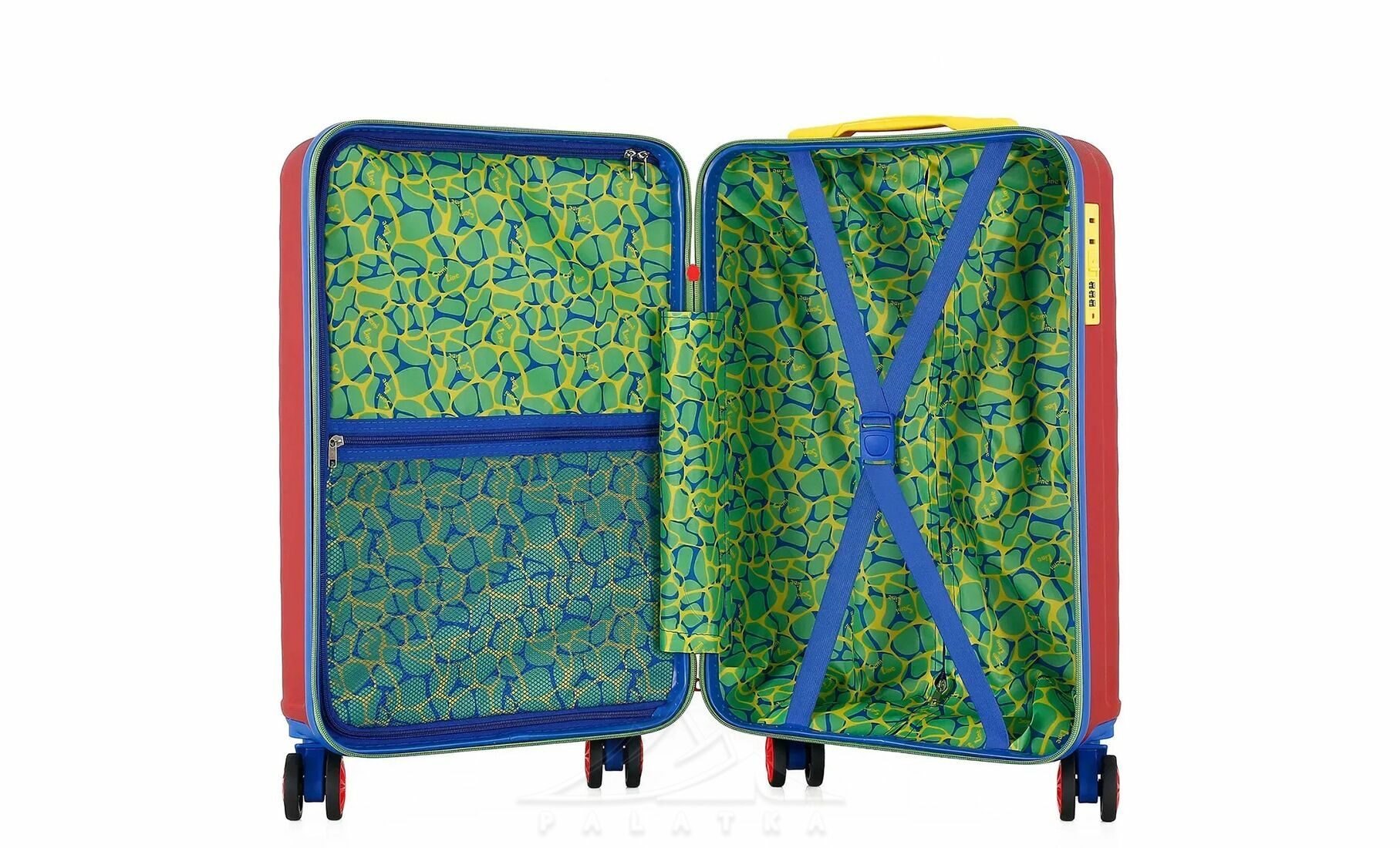 - Чотири здвоєні колеса з обертанням на 360° — забезпечують плавніший хід, кращу стійкість і допомагають легше маневрувати в аеропорту, на вокзалі чи в готелі.