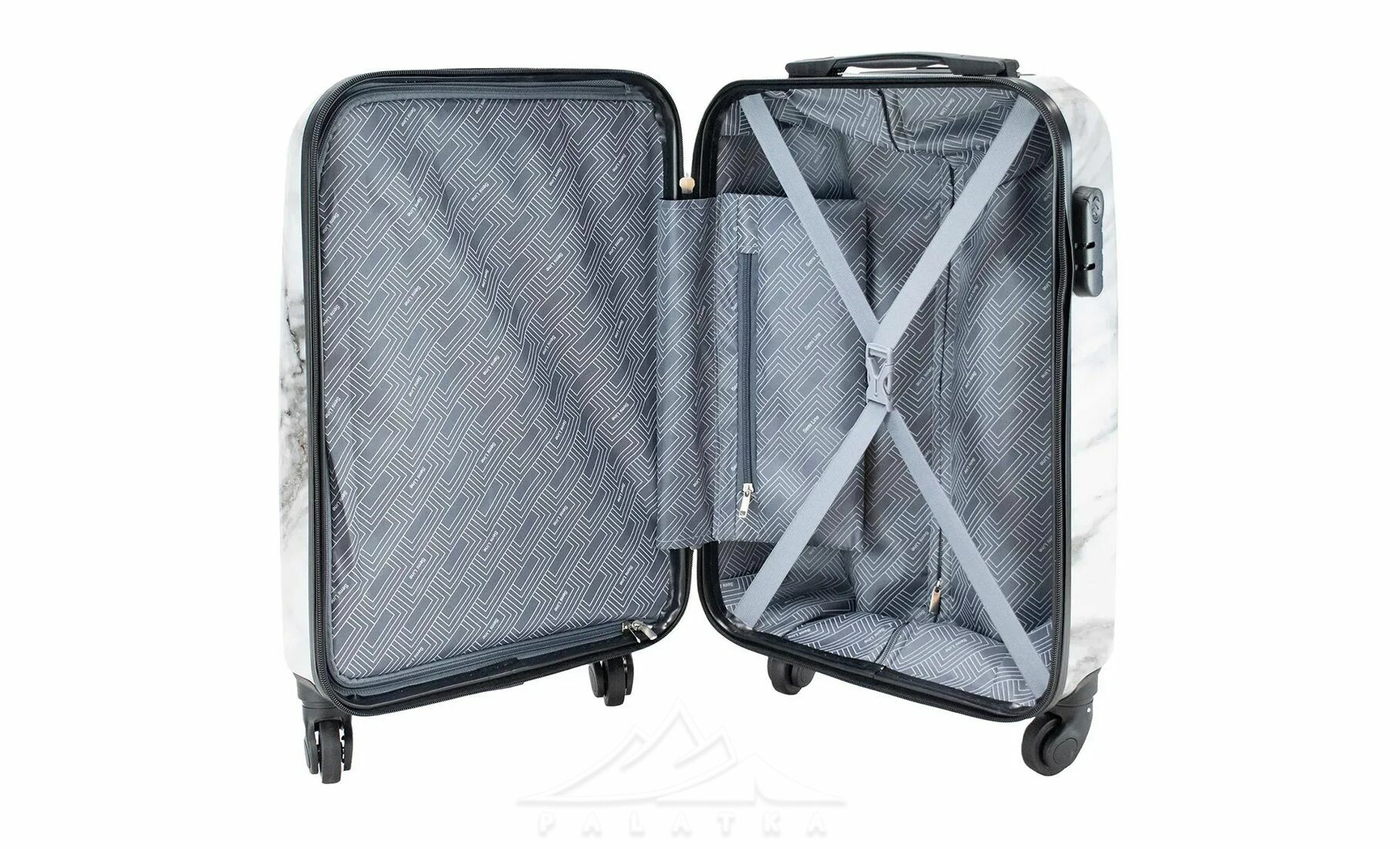 Компактна валіза Semi Line об’ємом 41 л підійде для коротких поїздок, відряджень і перельотів, коли хочеться взяти все потрібне без зайвого габариту. Жорсткий корпус із композиту полікарбонату та ABS-пластику допомагає краще захистити речі в дорозі, а помітний мармуровий принт дозволяє швидше впізнати валізу серед іншого багажу. Це практичний варіант для тих, хто шукає легку дорожню валізу формату ручної поклажі з хорошою маневреністю та зручною організацією внутрішнього простору.