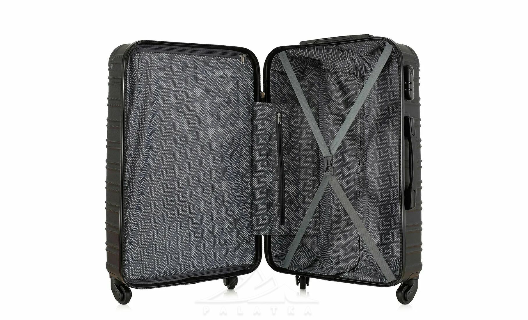 - Рифлений візерунок корпусу — додає жорсткості конструкції та допомагає валізі краще переносити дорожні навантаження.