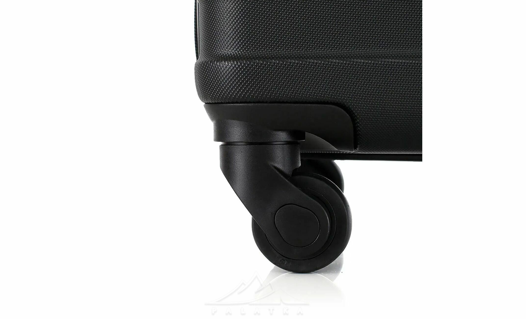 - Чотири повноповоротні колеса з обертанням на 360° — допомагають легше маневрувати з валізою в аеропорту, на вокзалі чи в готелі.