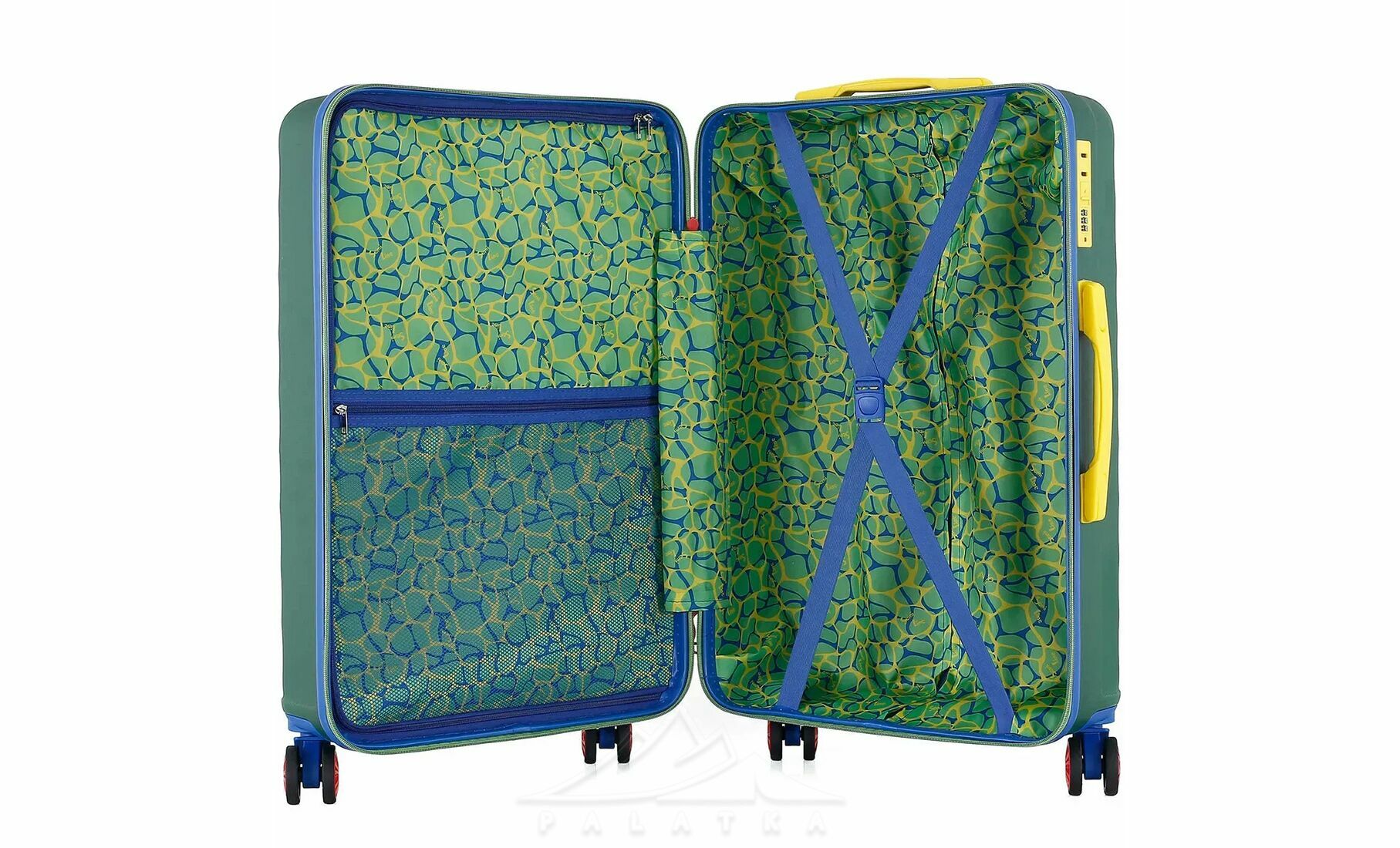- Чотири здвоєні колеса з обертанням на 360° — забезпечують плавніший хід, кращу стійкість і допомагають легше маневрувати в аеропорту, на вокзалі чи в готелі.