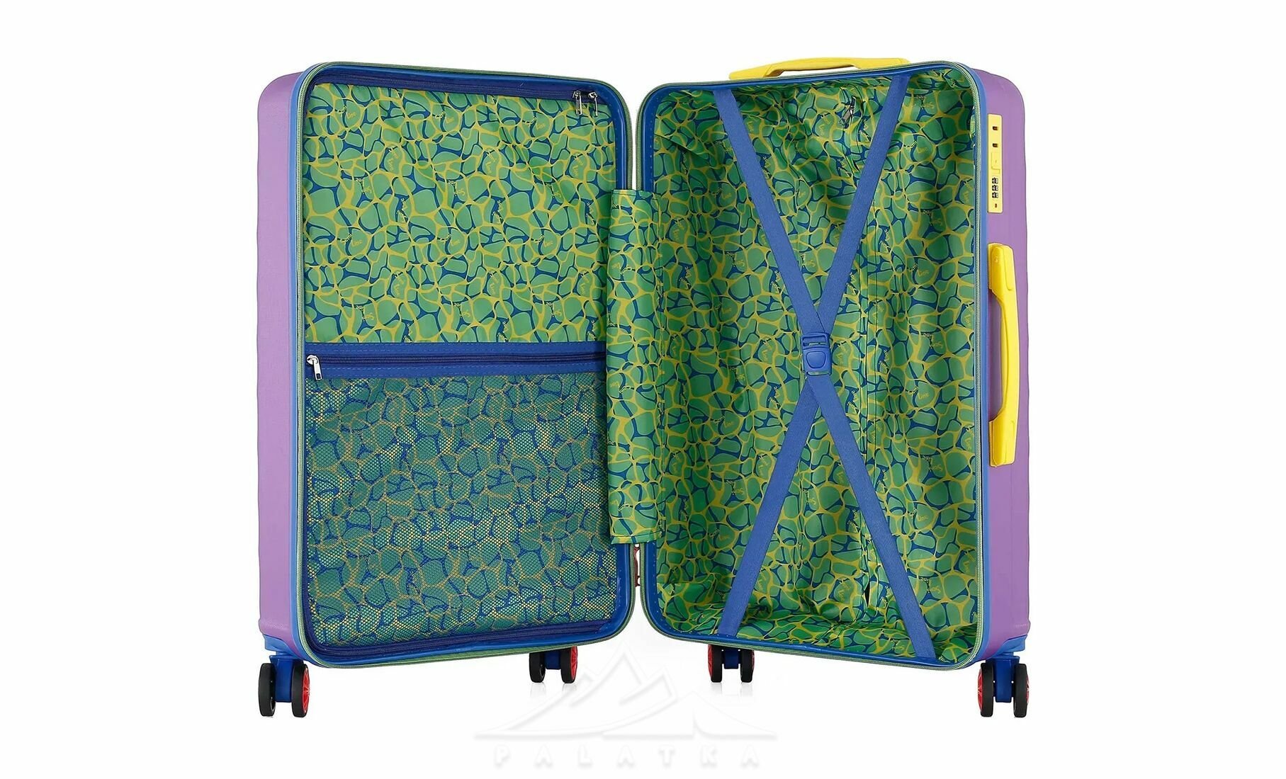 - Чотири здвоєні колеса з обертанням на 360° — забезпечують плавніший хід, кращу стійкість і допомагають легше маневрувати в аеропорту, на вокзалі чи в готелі.