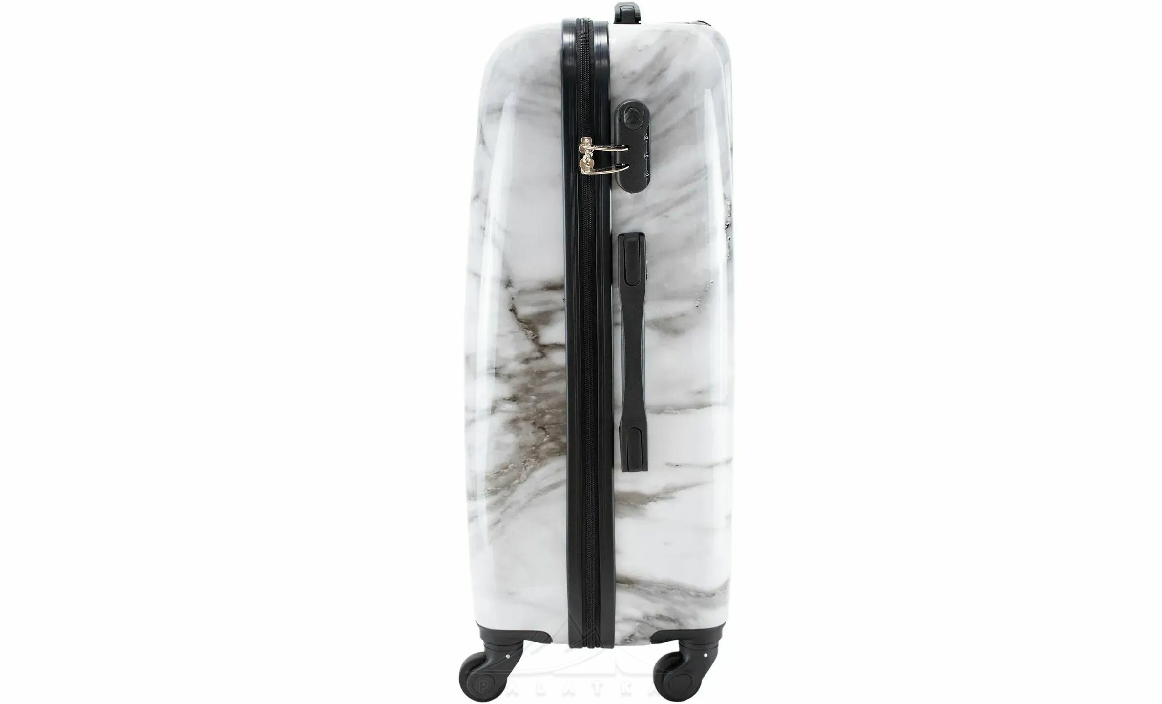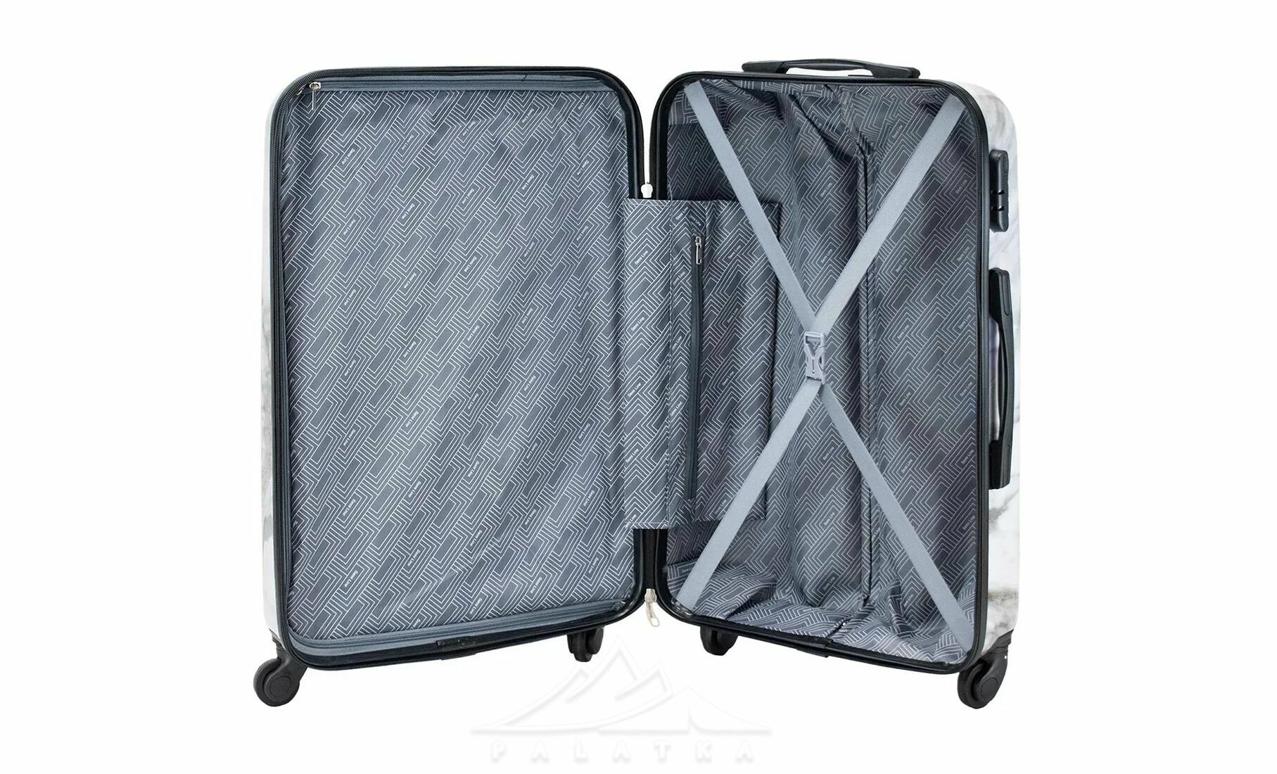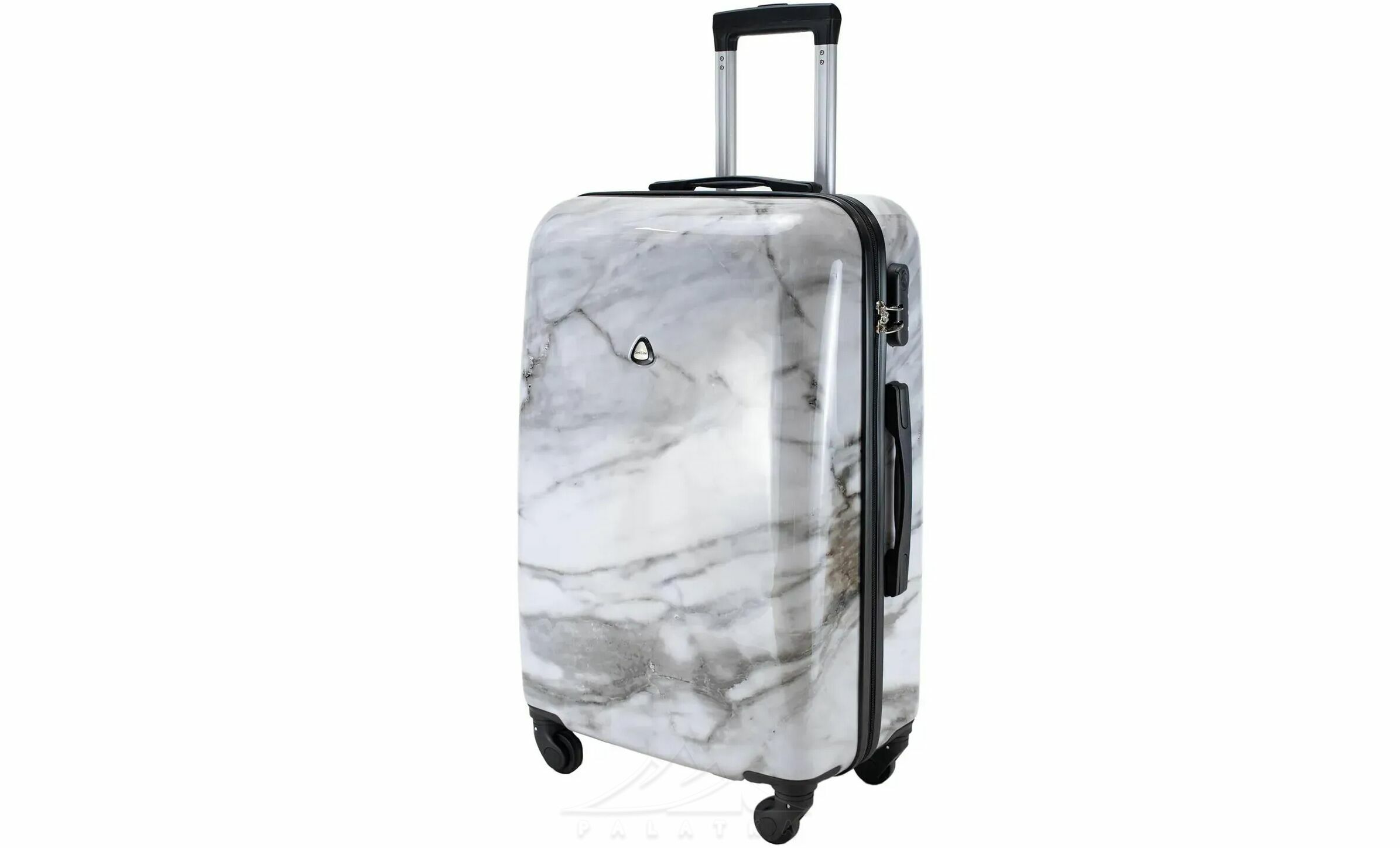 Валіза Semi Line об’ємом 63 л підійде для подорожей на кілька днів, відряджень і перельотів, коли хочеться взяти все потрібне без зайвого габариту. Жорсткий корпус із композиту полікарбонату та ABS-пластику допомагає краще захистити речі в дорозі, а виразний мармуровий принт робить валізу помітнішою серед іншого багажу. Це практичний варіант для тих, хто шукає середню дорожню валізу з хорошою маневреністю та зручною організацією внутрішнього простору.
