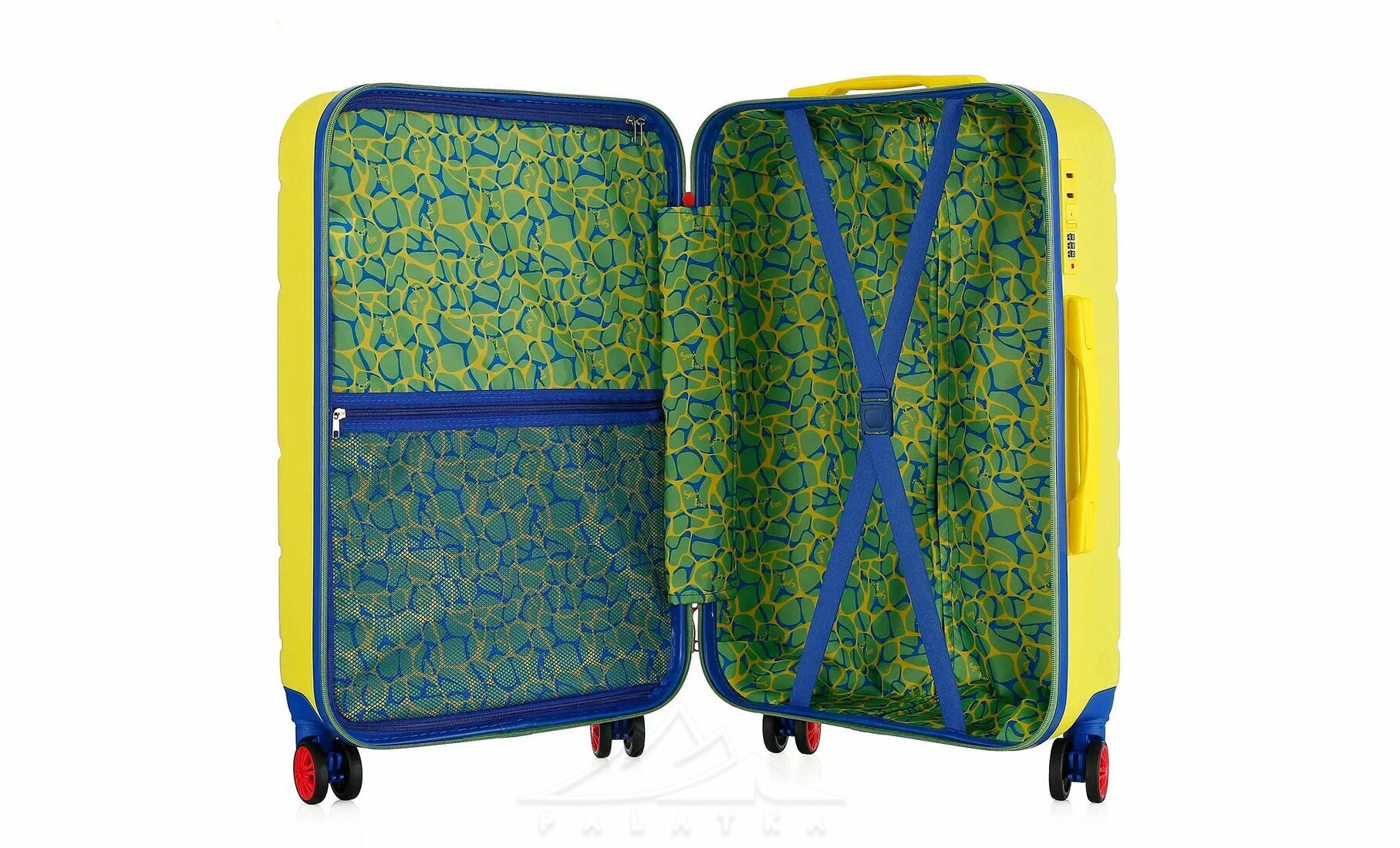 - Чотири здвоєні колеса з обертанням на 360° — забезпечують плавніший хід, кращу стійкість і допомагають легше маневрувати в аеропорту, на вокзалі чи в готелі.