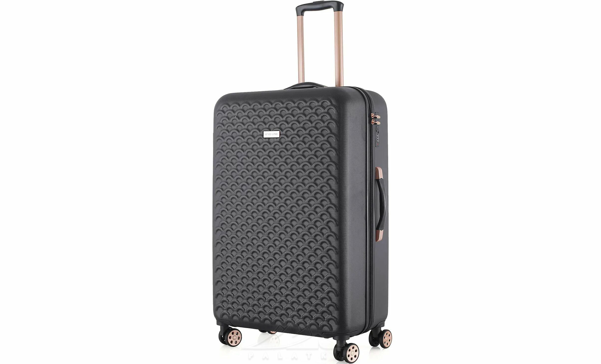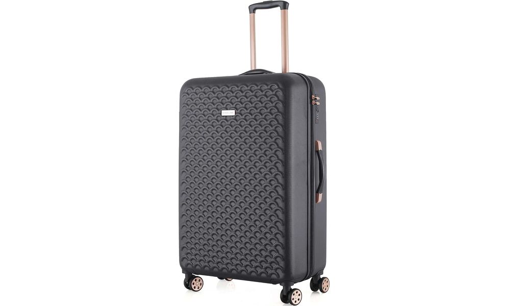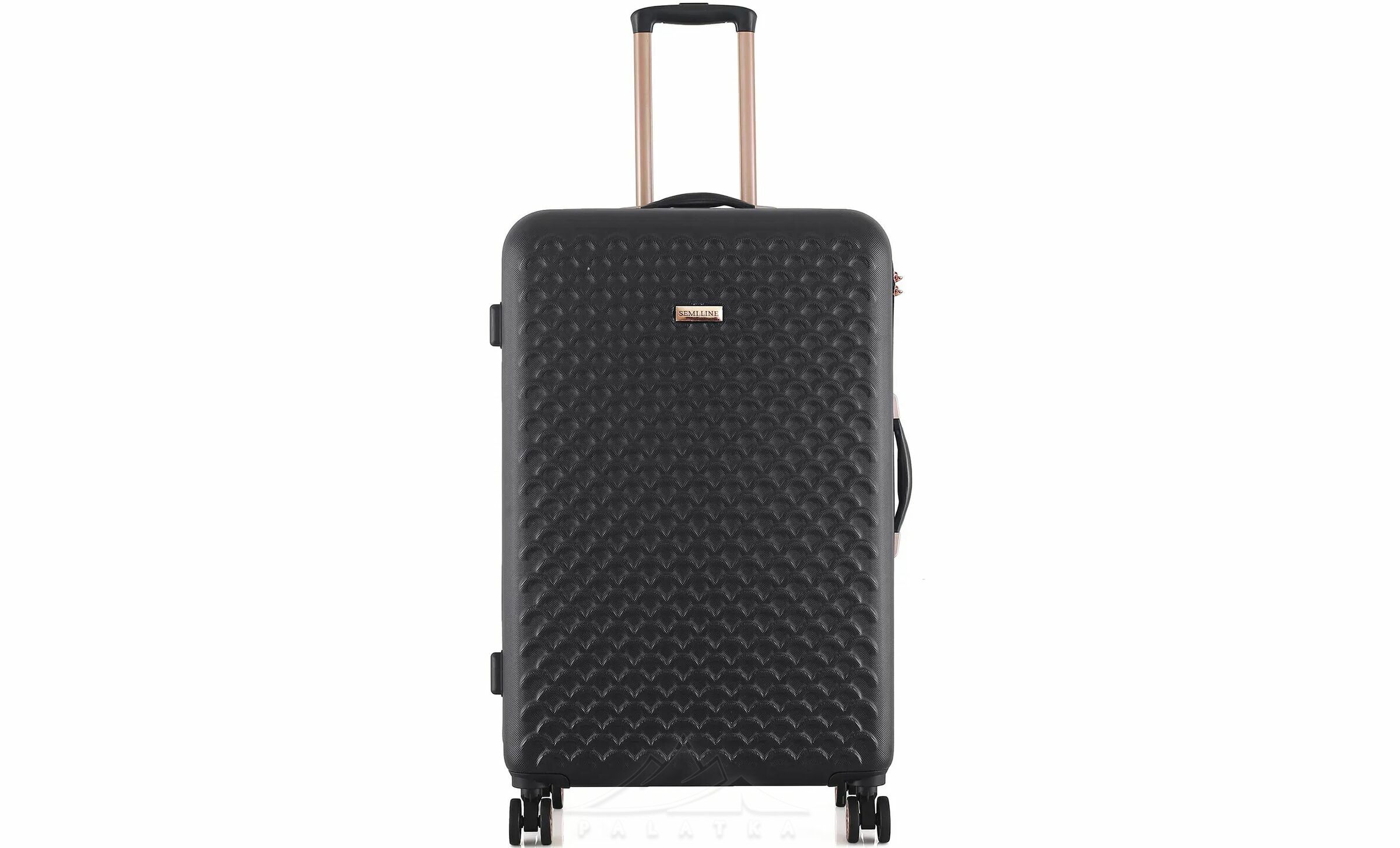 - Чотири здвоєні колеса з обертанням на 360° — забезпечують кращу стійкість, плавніший хід і допомагають легше маневрувати в аеропорту, на вокзалі чи в готелі.