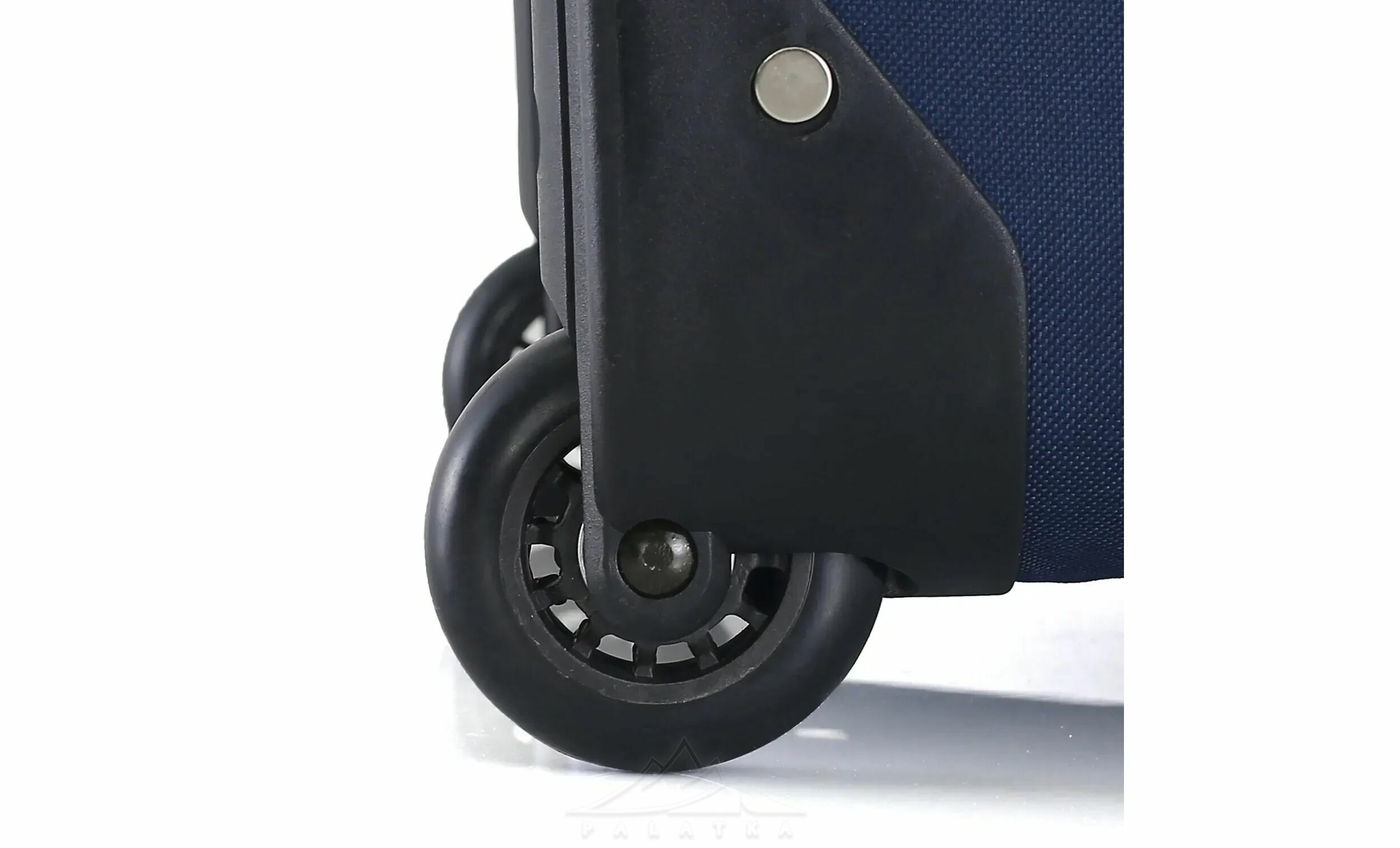 • Два приховані колеса великого діаметра — краще захищені від ударів і допомагають валізі плавніше котитися навіть по неідеальній поверхні.