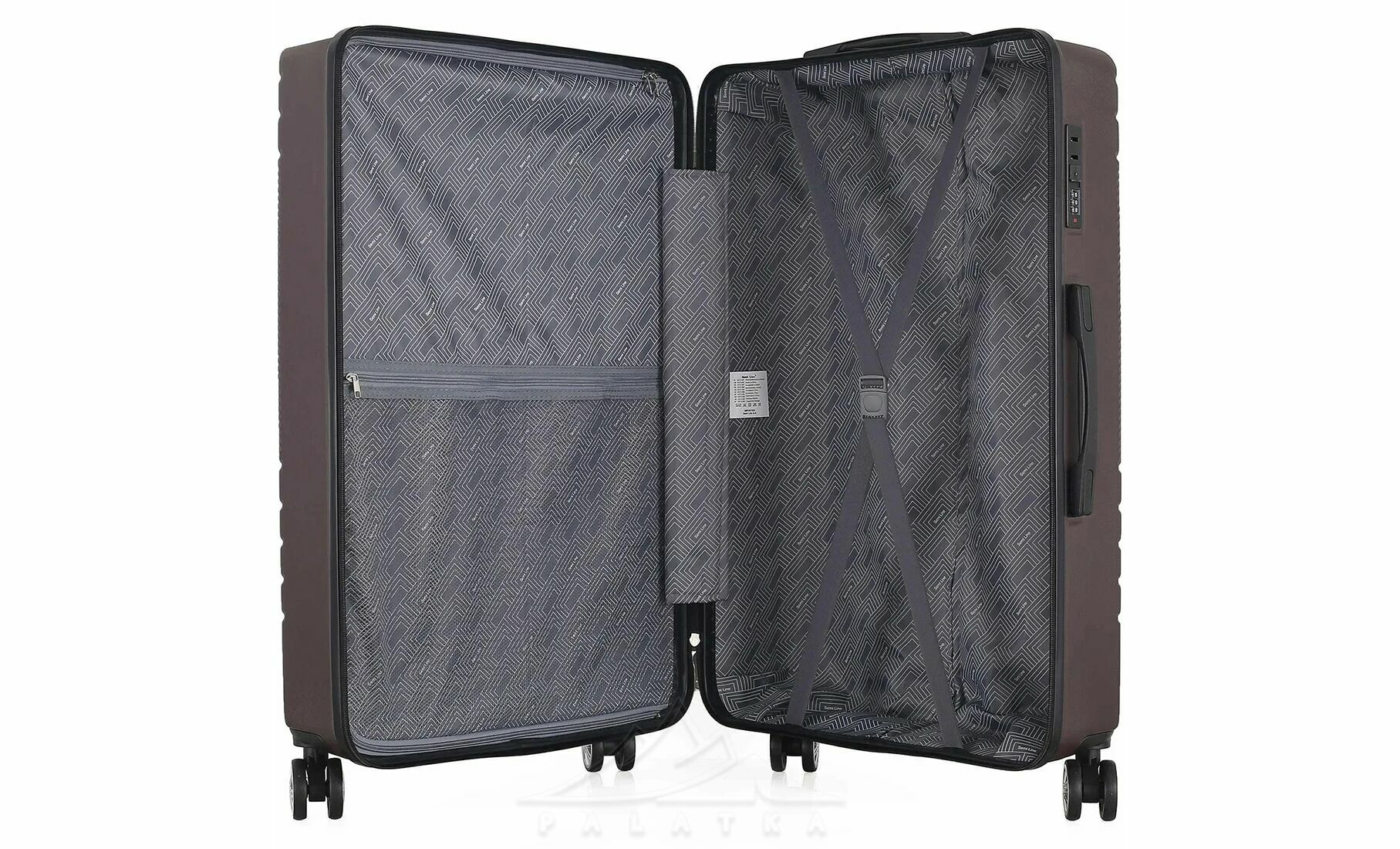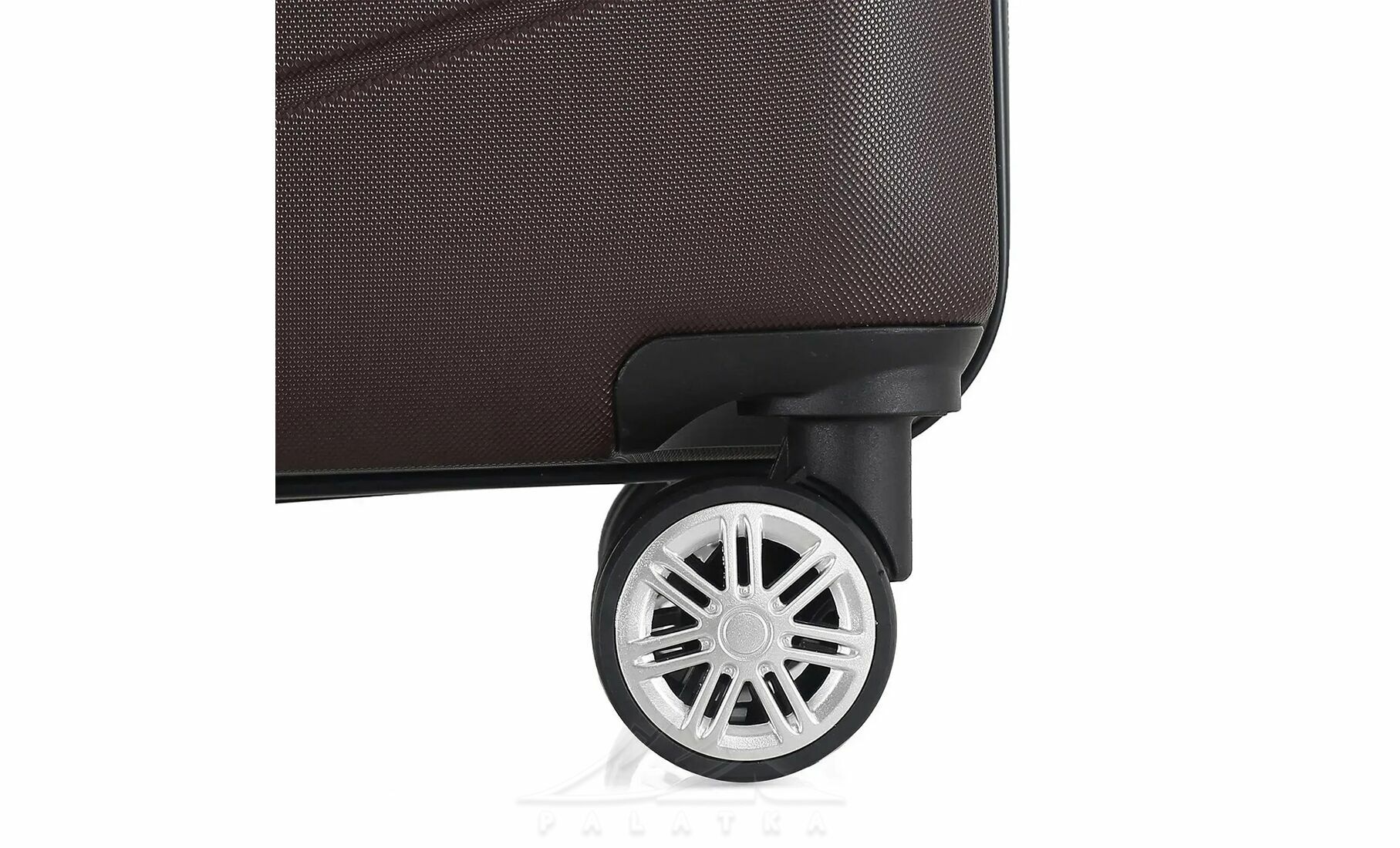- Чотири здвоєні колеса з обертанням на 360° — забезпечують кращу стійкість, плавніший хід і допомагають легше маневрувати в аеропорту, на вокзалі чи в готелі.