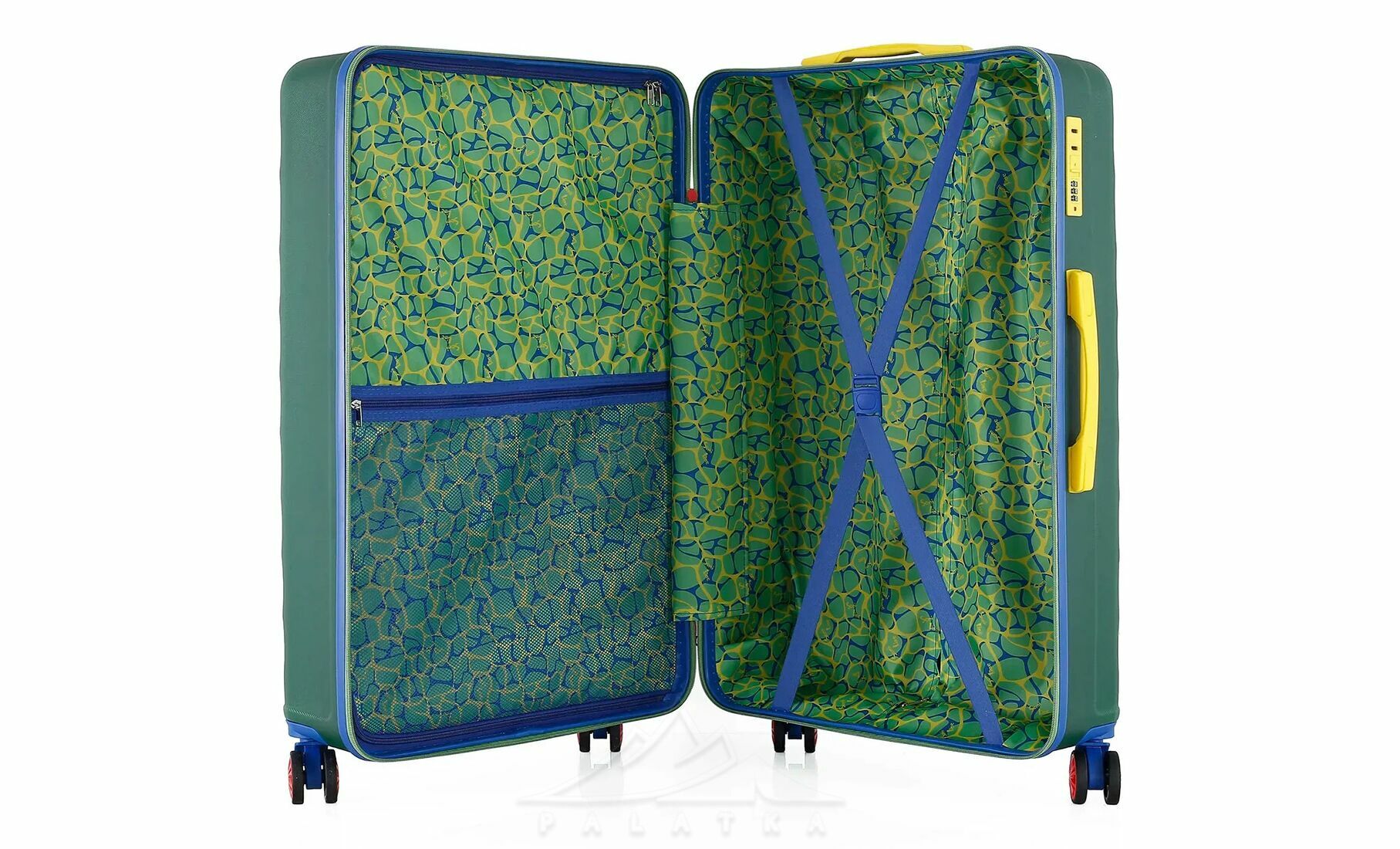• Чотири здвоєні колеса з обертанням на 360° — забезпечують кращу стійкість, плавніший хід і допомагають легше маневрувати в аеропорту, на вокзалі чи в готелі.
