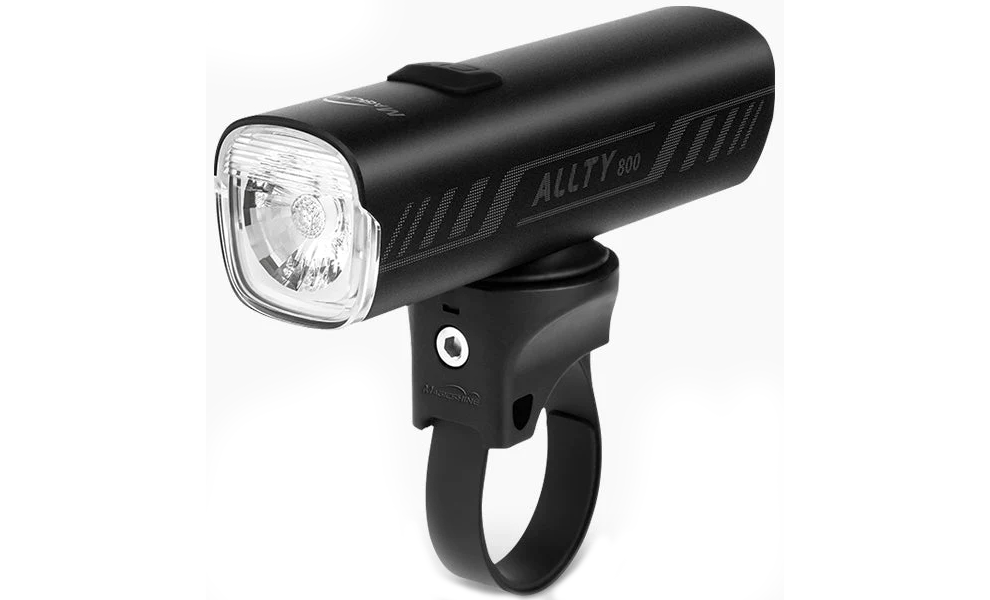 Велофара Magicshine Allty 800 — універсальне переднє світло для міста та заміських поїздок у темряві, коли потрібно добре підсвітити дорогу й залишатися помітним. Має 3 режими постійного світла та 2 режими блимання, а максимальна дальність променя — до 141 м (ANSI FL1).