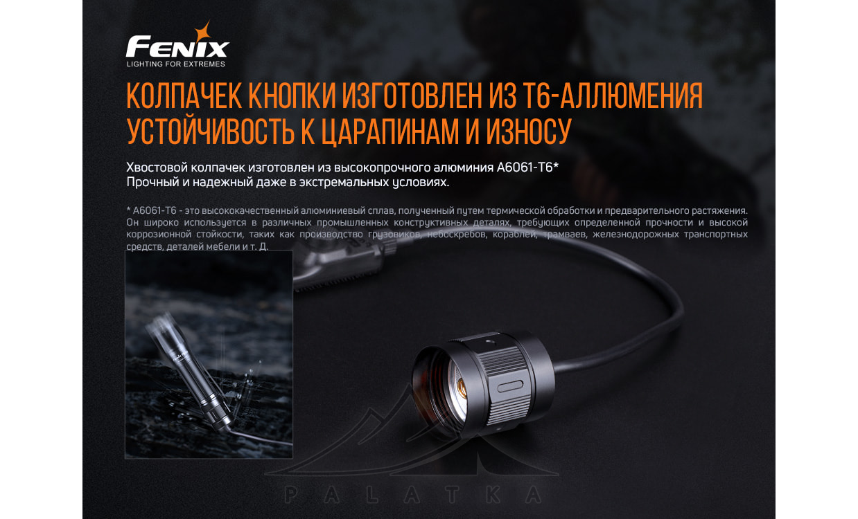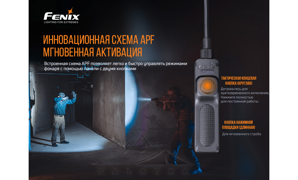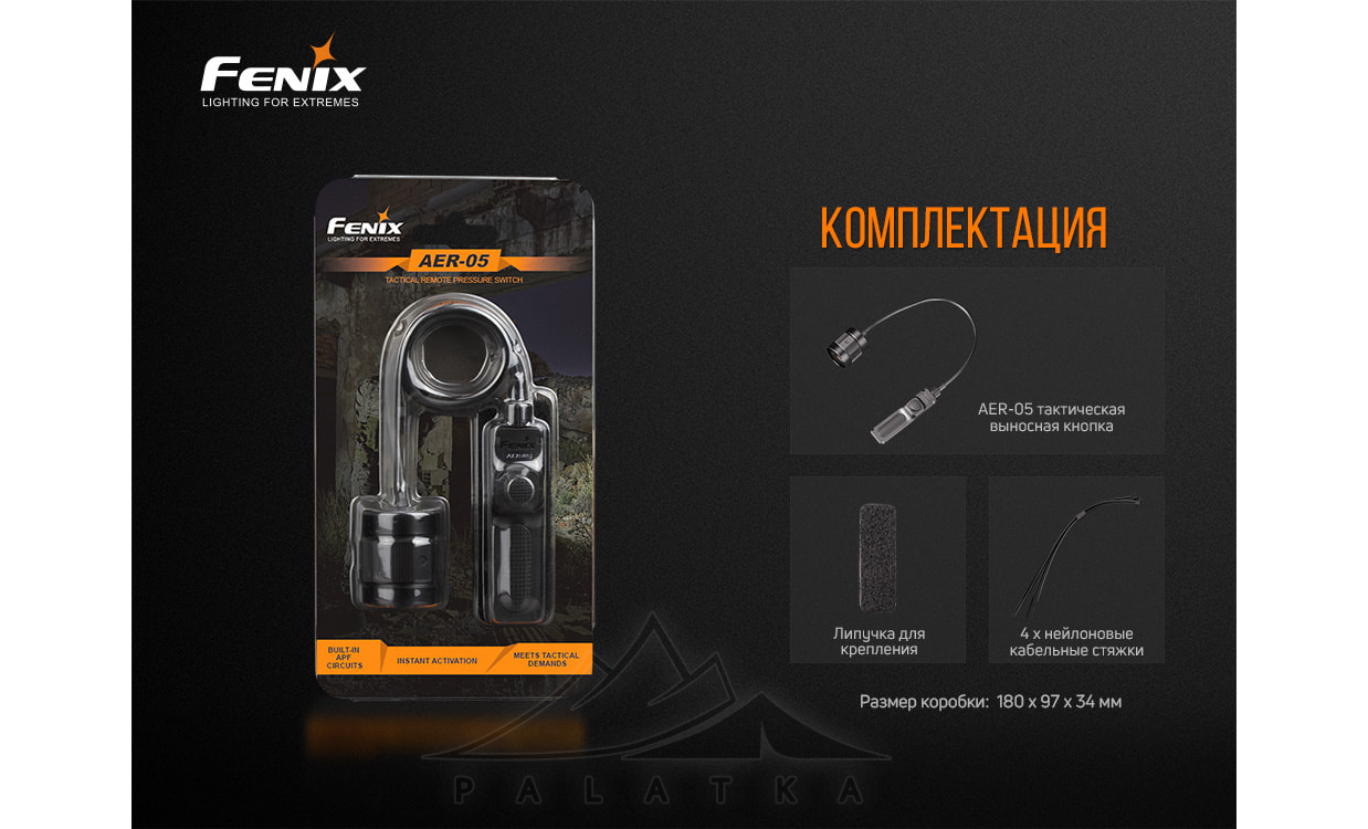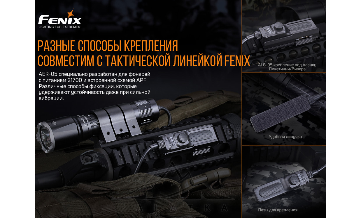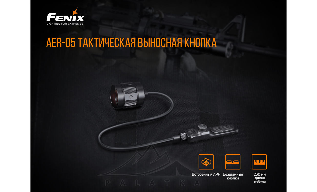 Fenix AER-05 — тактична виносна кнопка, призначена для віддаленого увімкнення ліхтаря, закріпленого на зброї.