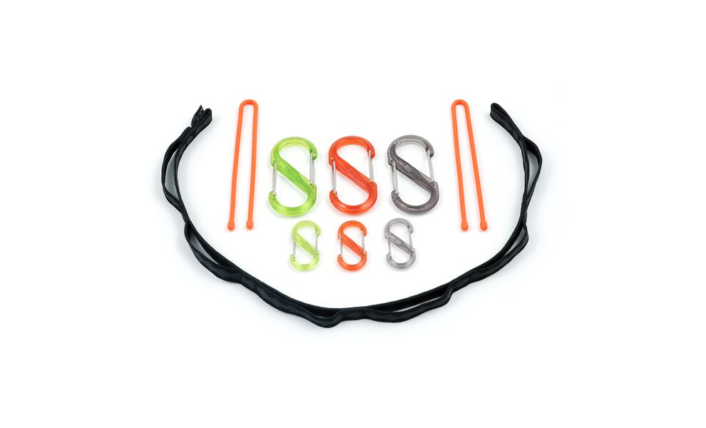 - До комплекту входить міцна стропа (довжина 61 см), 3 подвійні карабіни (8,9x4,2 см), 3 подвійні карабіни (5,2x2,5 см), 2 гнучкі стяжки (довжина кожної 30,5 см).