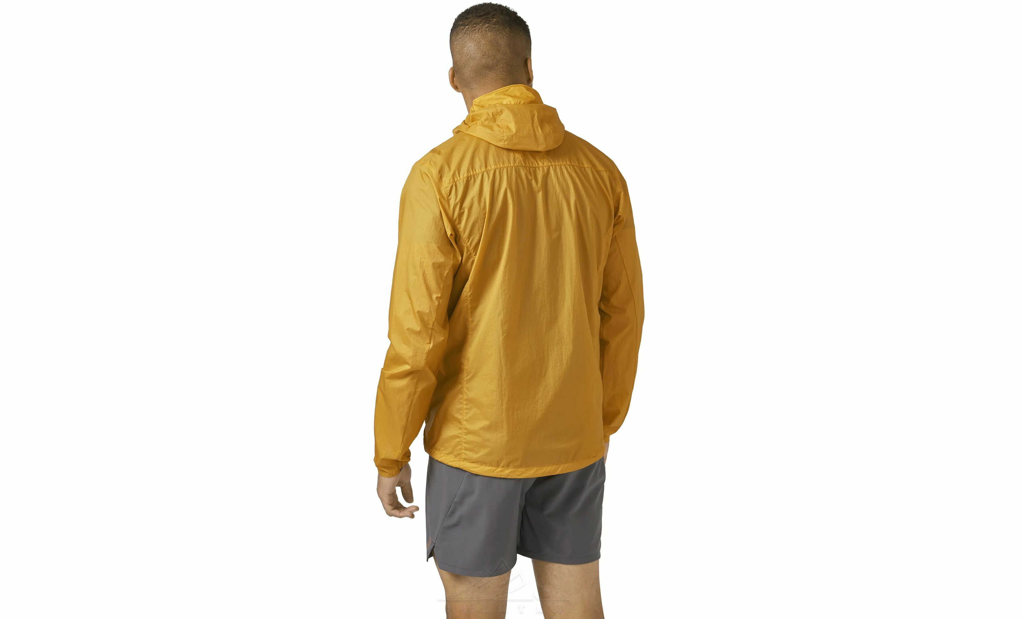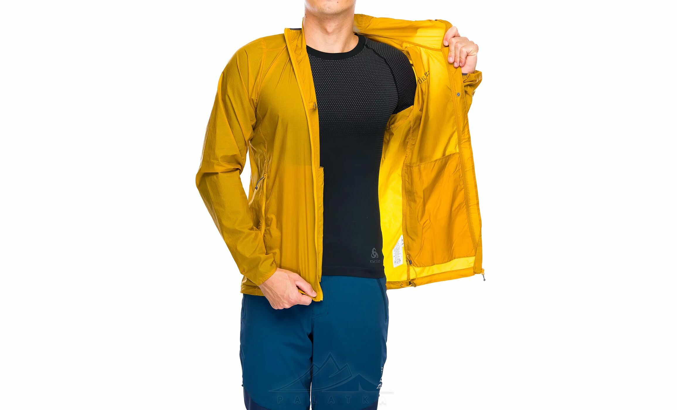 - Виготовлена з фірмової тканини Atmos™ з нейлону щільністю 20D з поліуретановим покриттям, яка швидко висихає, ефективно відводить вологу та добре підходить для тривалого носіння під час активного руху. Матеріал легкий, дихаючий і приємний до тіла, забезпечує надійний захист від вітру та легких опадів.