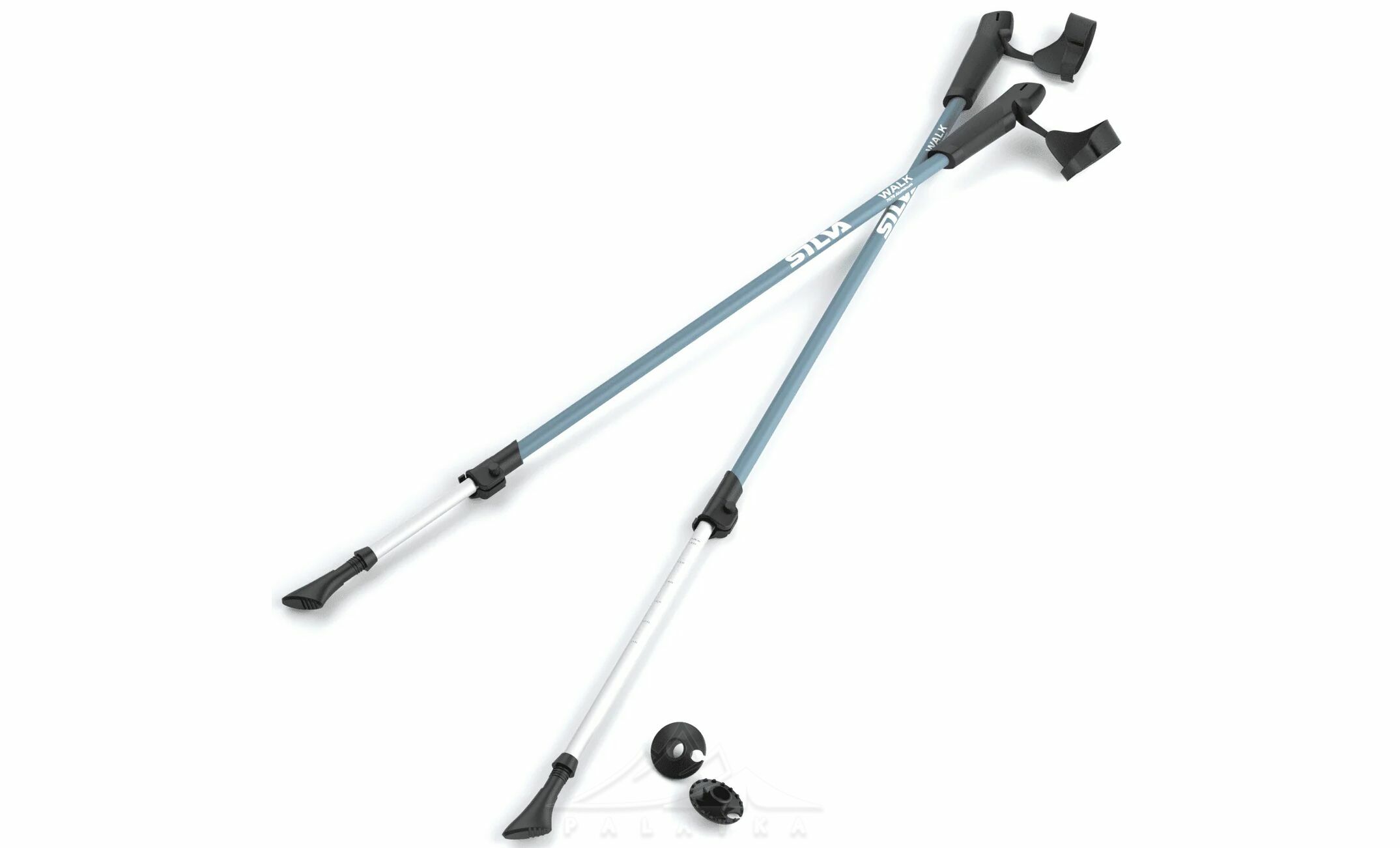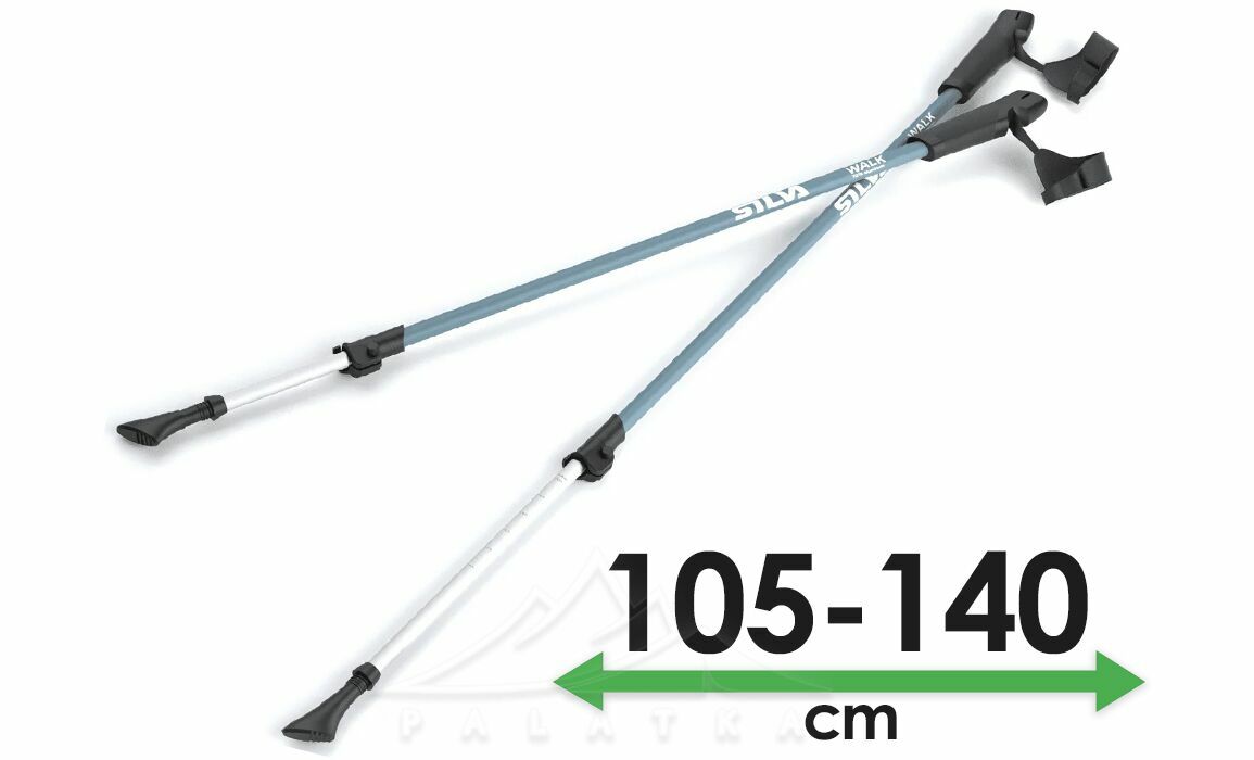 Палиці для скандинавської ходьби Silva Walking Aluminum — виготовлені з алюмінію 7075, мають гумові руків'я для гарного зчеплення та комфорту, з ремінцями на зап’ясті. Ремені на зап’ясті легко регулюються і дозволяють виконувати повний діапазон рухів під час швидкої ходьби. Довжину палиць можна регулювати в діапазоні 105-140 см за допомогою зовнішнього замка Twist-Lock. В комплекті гумові чобітки та кільця.