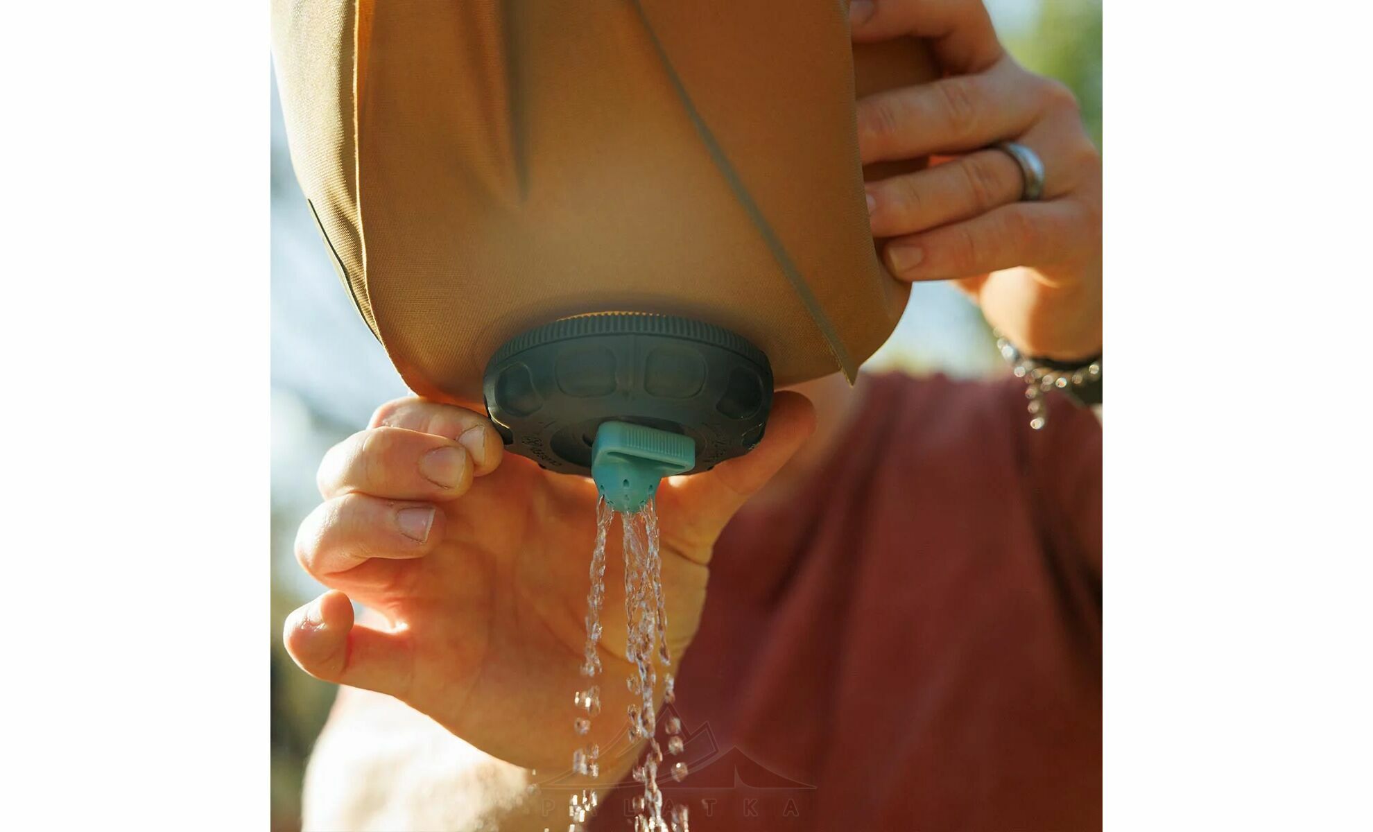 • Широка горловина спрощує наповнення водою без зайвих проливів, що особливо зручно в польових умовах або при наборі води з різних джерел.
