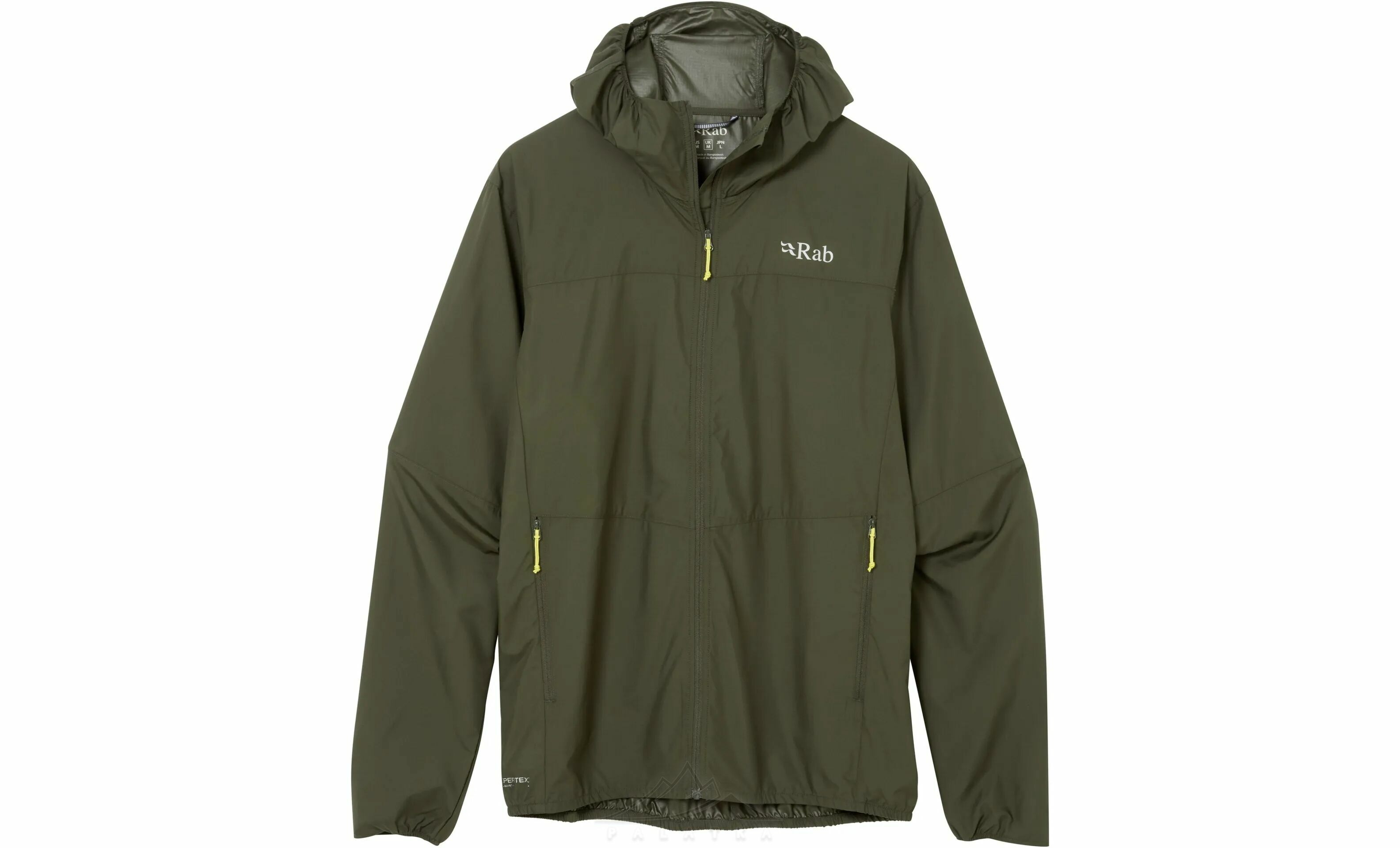 Rab Windgather Hoody — легка чоловіча вітрівка з капюшоном і водовідштовхувальним покриттям, створена для ефективного захисту від вітру та легких опадів. Чудово підходить для активних походів, гірських маршрутів і прогулянок у мінливих погодних умовах, коли важливі легкість, компактність і комфорт.