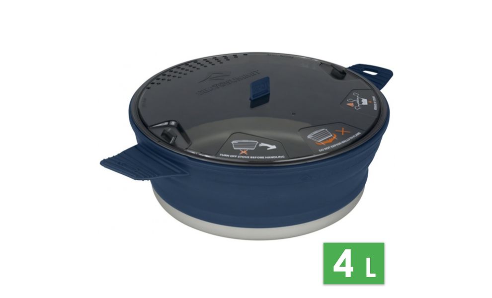 Каструля Sea to Summit X-Pot розроблена для приготування їжі в походах. Стінки виготовлені з термостійкого харчового силікону та основа зроблена з андованого алюмінію, який є легким та міцним. Кастрюля складається і має дуже компактні розміри. Підходить для туристів, для яких важлива зручність.