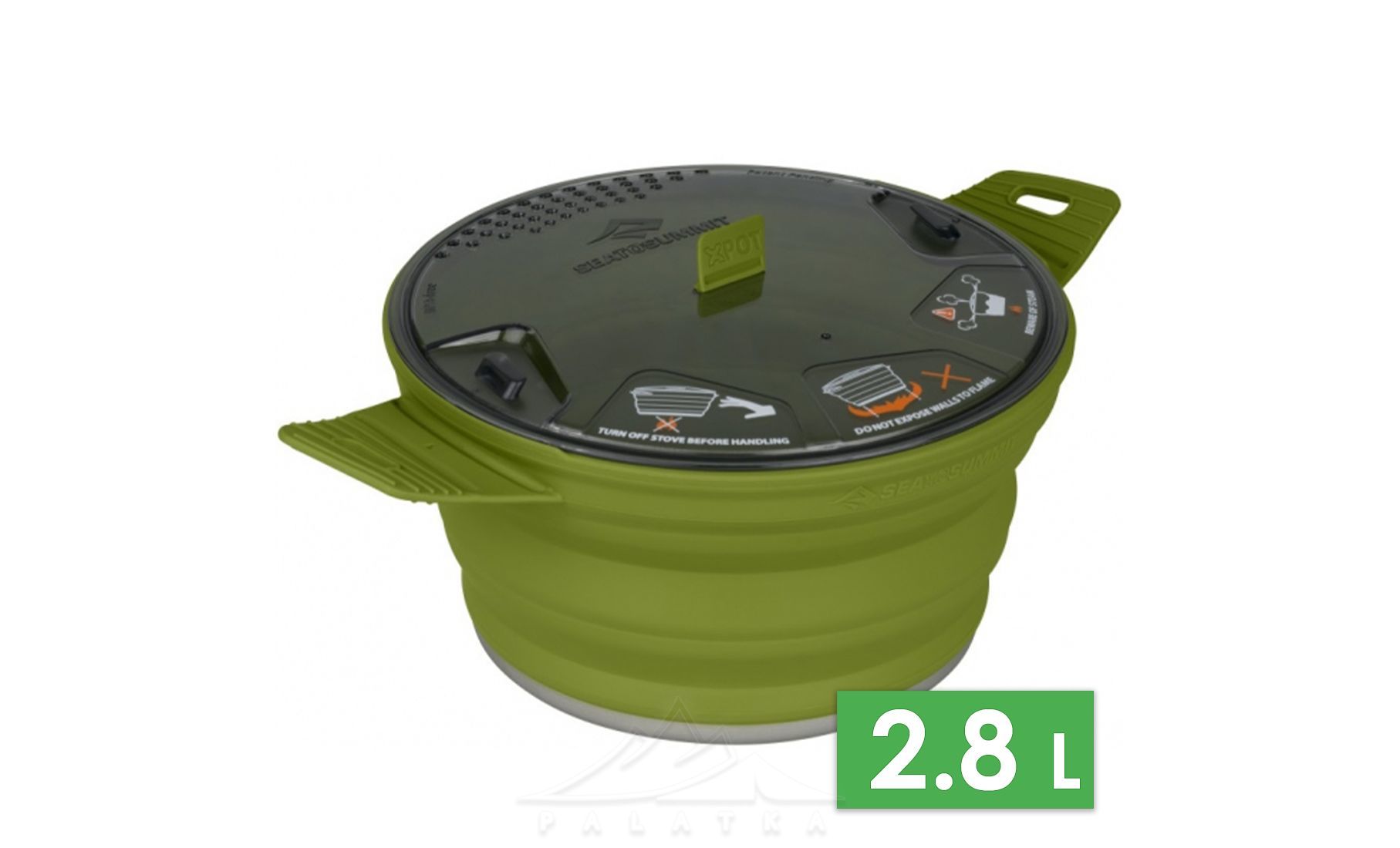 Каструля Sea to Summit X-Pot розроблена для приготування їжі в походах. Стінки виготовлені з термостійкого харчового силікону та основа зроблена з андованого алюмінію, який є легким та міцним. Кастрюля складається і має дуже компактні розміри. Підходить для туристів, для яких важлива зручність.