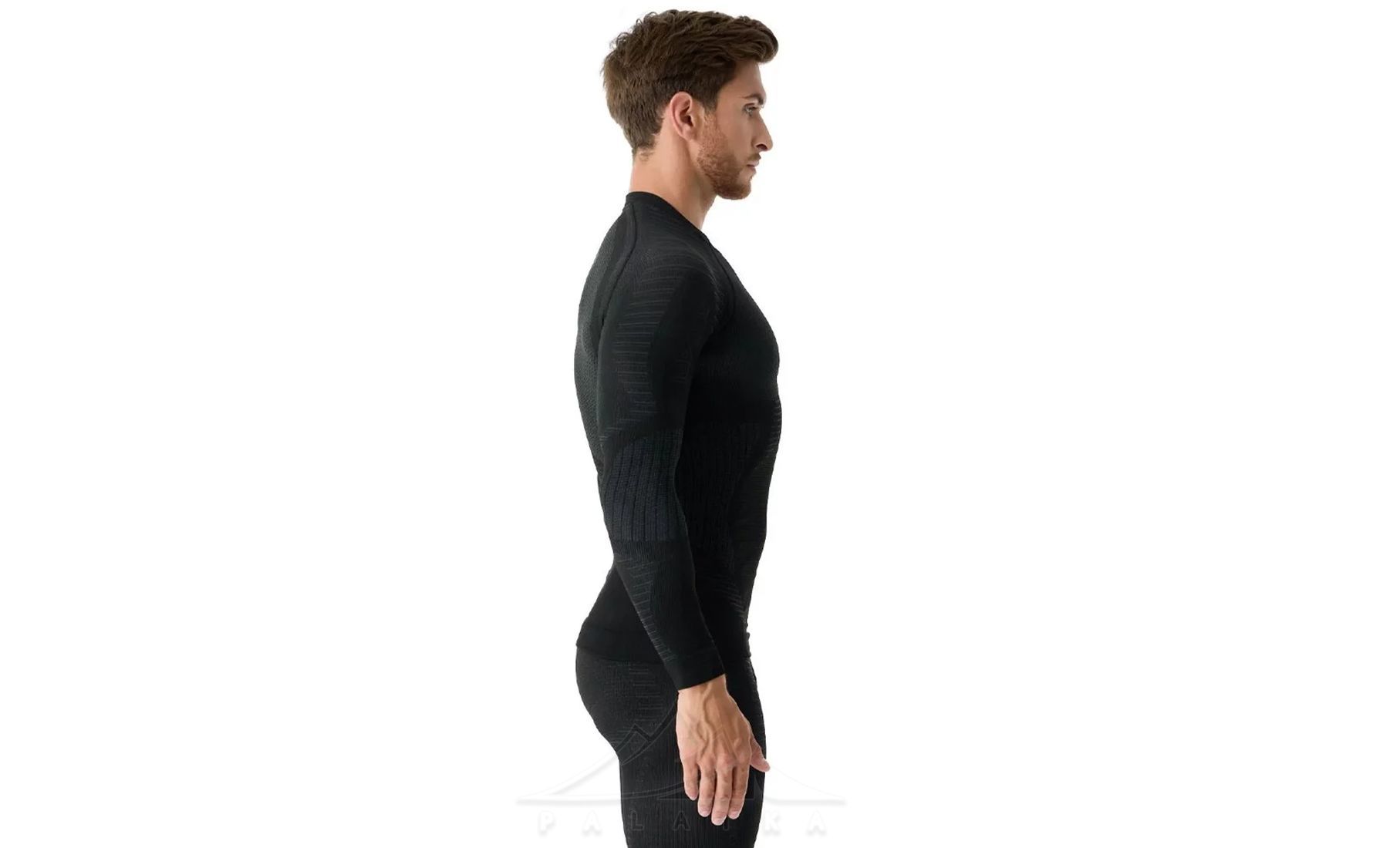 - Виготовлена з синтетичного матеріалу: 67% поліпропілену, 26% нейлону, 7% еластану — легке, дихаюче та еластичне поєднання волокон, яке швидко відводить вологу, зберігає тепло та не викликає подразнення шкіри.