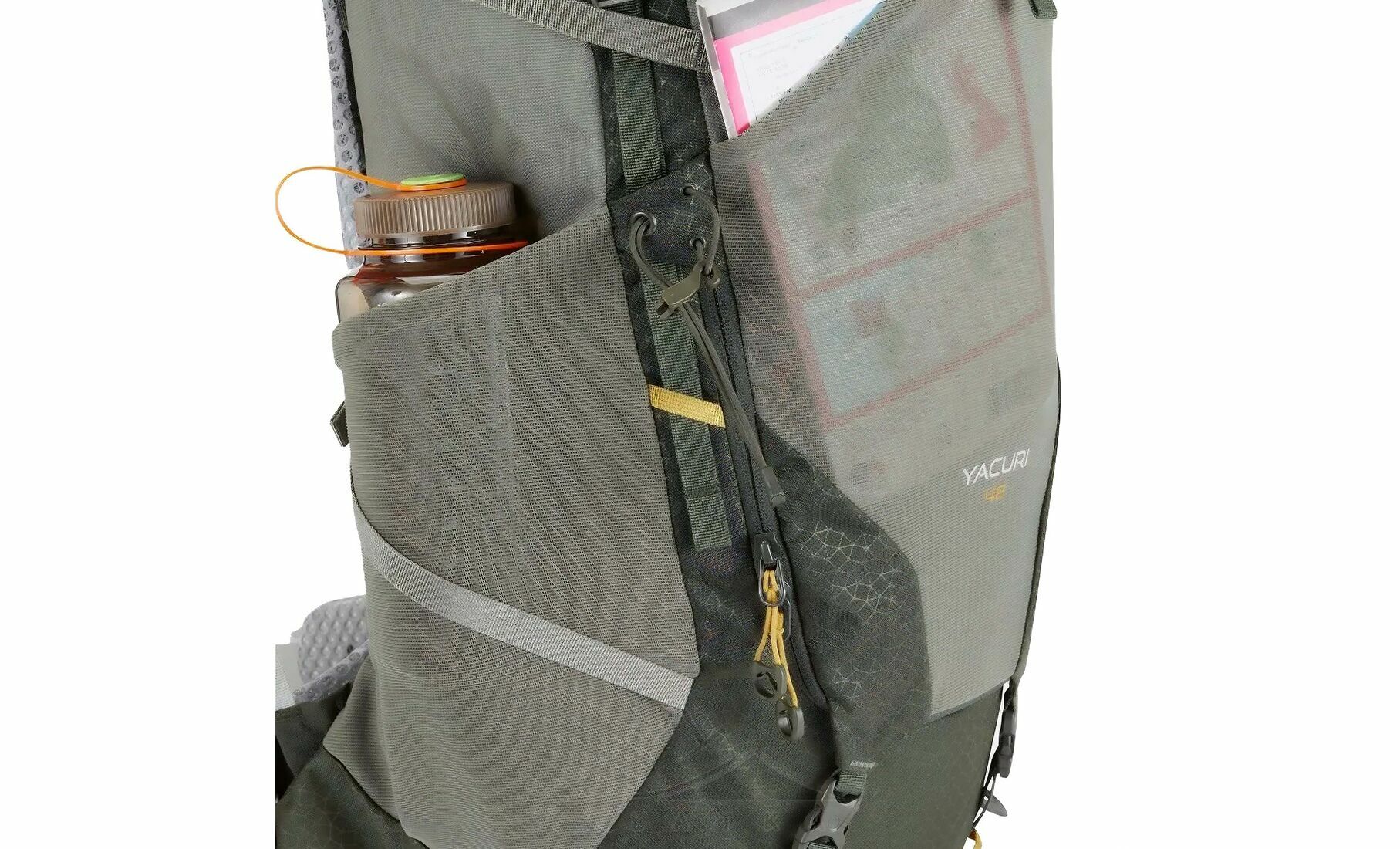 - основний: 330D Striped Dobby (70% нейлон, 30% поліестер) (50% перероблений) HydroShield; підкладка: 100% поліестер