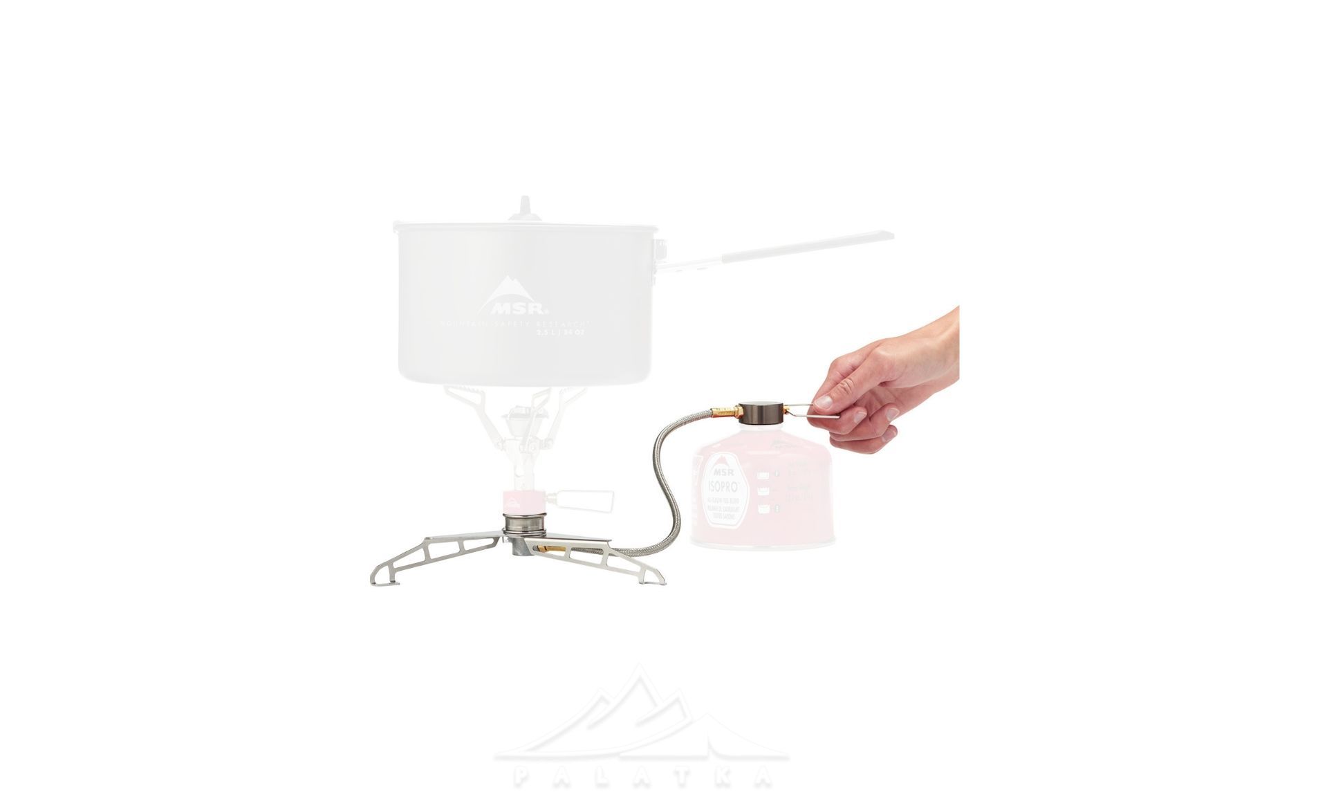 MSR LowDown Remote Stove — адаптер зі шлангом, що дозволяє використовувати різьбові балони з різьбовими пальниками MSR.