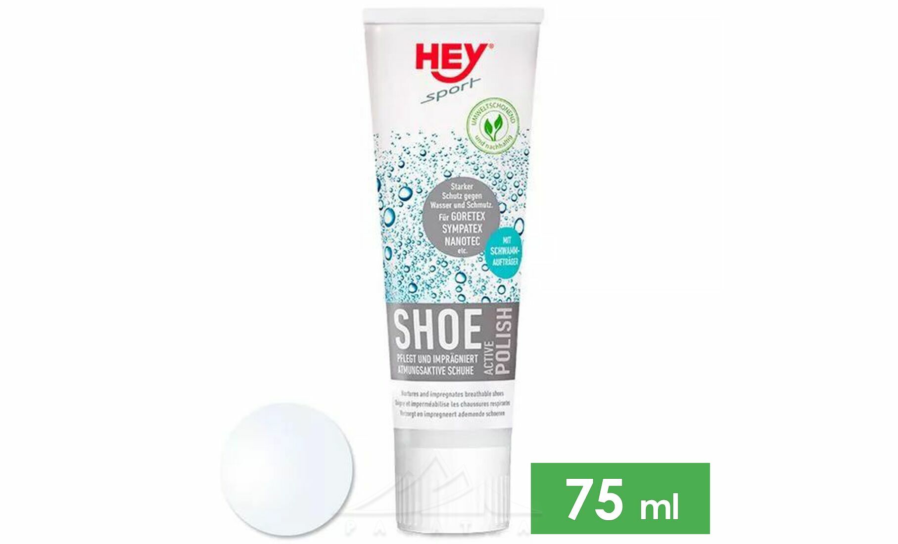 Засіб для просочення мембранного взуття HEY SPORT® Active Polish — універсальне просочення для взуття. Підходить для взуття з мембранними тканинами, а також зі шкіри, текстилю та їх комбінацій.