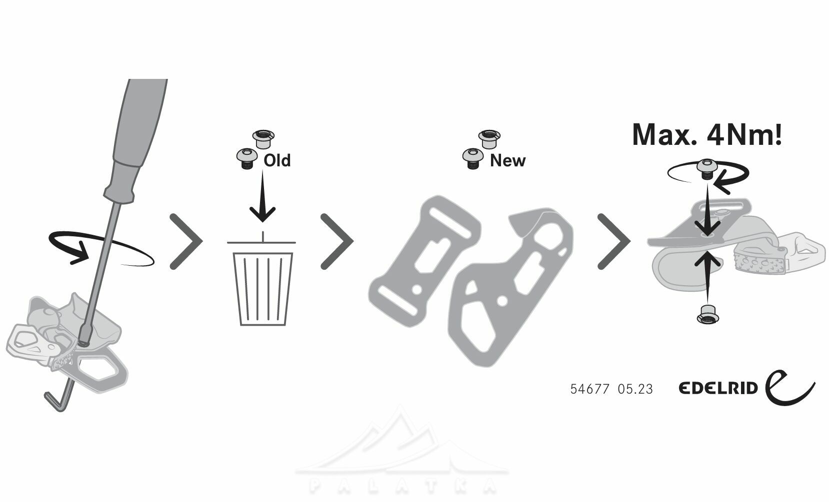 - На відміну від аналогів, модель розбірна: пластина-фіксатор знімається й може бути замінена на варіант з металевими петлями від моделі Edelrid Uni Cruiser.