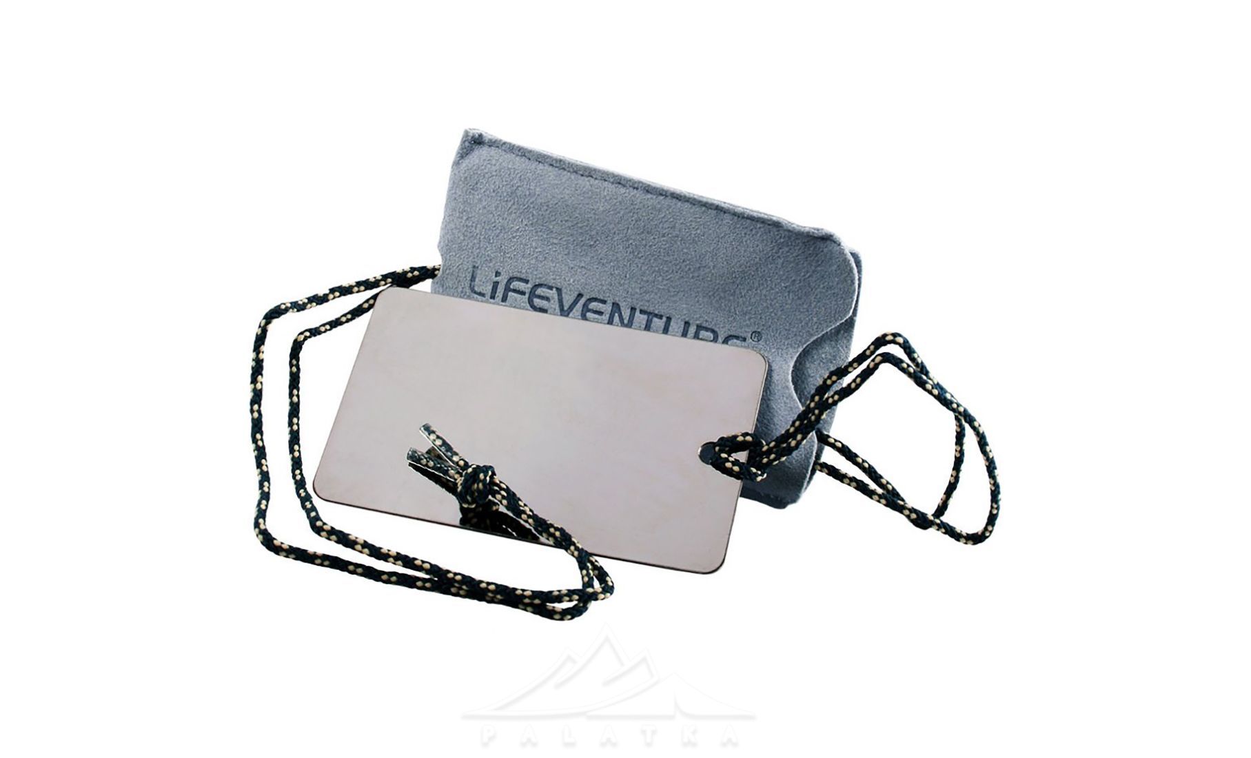 Lifeventure Travel Mirror — компакне двостороннє дорожне дзеркало з ремінцем та захисним чохлом. Зручна модель для подорожей, походів, або повсякденного використання.
