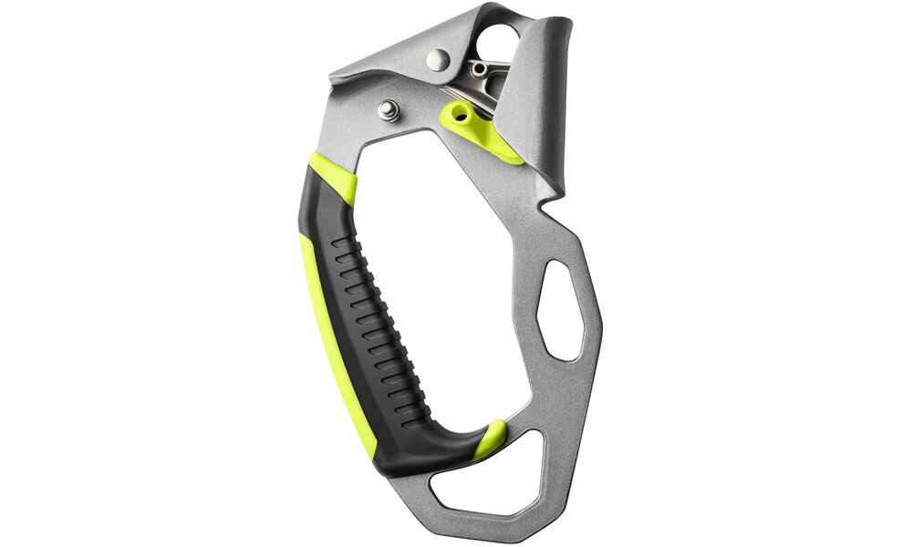 - Відхилена ручка компенсує природний нахил жумара при навантаженні, зменшує залом мотузки та полегшує ковзання