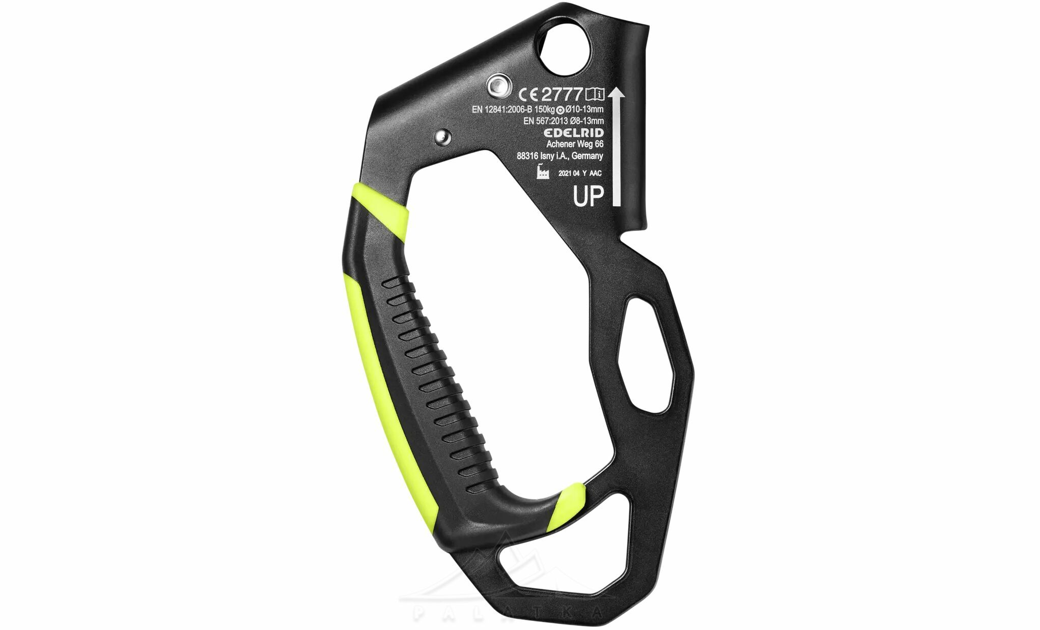 - Відхилена ручка компенсує природний нахил жумара при навантаженні, зменшує залом мотузки та полегшує ковзання